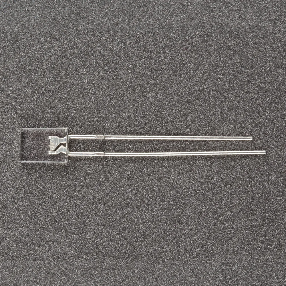 Поставка под заказ от 5000 шт. Выводной прямоугольный светодиод, 2×5×7 мм, прозрачная линза. Цвет свечения красный (625 нм). Угол излучения 80°. Сила света Iv=1000-2000 мкд при If=20 мА. VF=1.9-2.3 В. Рекомендуемый постоянный рабочий ток <16-17 мА.