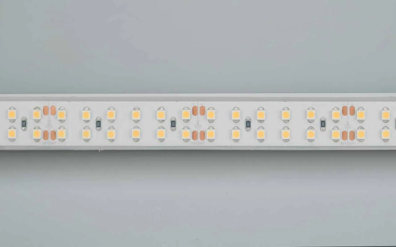 Широкая герметичная IP66 (плата в cиликон.трубке) гибкая лента LUX, светодиоды 2x2 (2 ряда) smd 3528, 240шт/м (1200шт на 5м), белая плата 15мм, скотч 3М. Цвет БЕЛЫЙ ТЕПЛЫЙ 2600-2800K.Питание 24В, мощность 19,2 Вт/м (96 Вт на 5м), угол 120°. Размеры 5000x17.5x5.5мм. Мин.отрезок 50мм (12 LED). Цена за 1м.