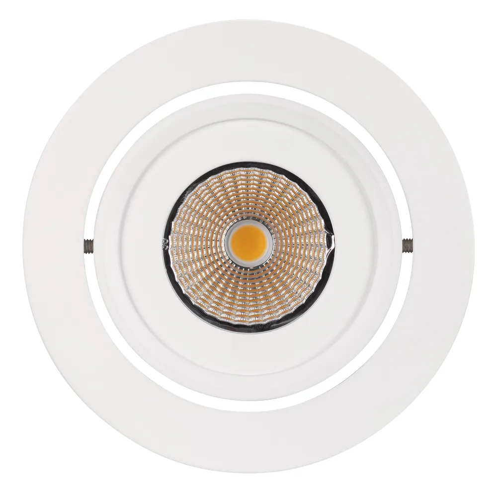 Встраиваемый круглый светильник с наклоняемой осью, угол наклона оси ~30°, угол свечения 45° / 9Вт / БЕЛЫЙ 5000K / светодиод 1x9W CITIZEN / 672 лм. Белая лицевая панель. Питание AC230V (драйвер в к-те 220mA 30-45V). Размеры DxH: 109х102мм, отверстие для установки 95мм.