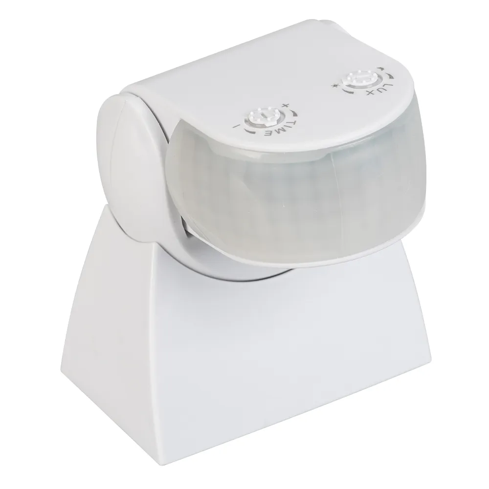 Инфракрасный влагозащищенный (IP65) датчик движения, совмещенный с датчиком освещенности, регулировка времени (10с–7мин), расстояния (до 12 м), освещенности (3-2000люкс). Нагрузка 1200 Вт (для ламп накал-я и галогенных), 300 Вт (для светодиодных и люминесцентных ламп), цвет белый, размеры 117*80*51мм, вес 200 г