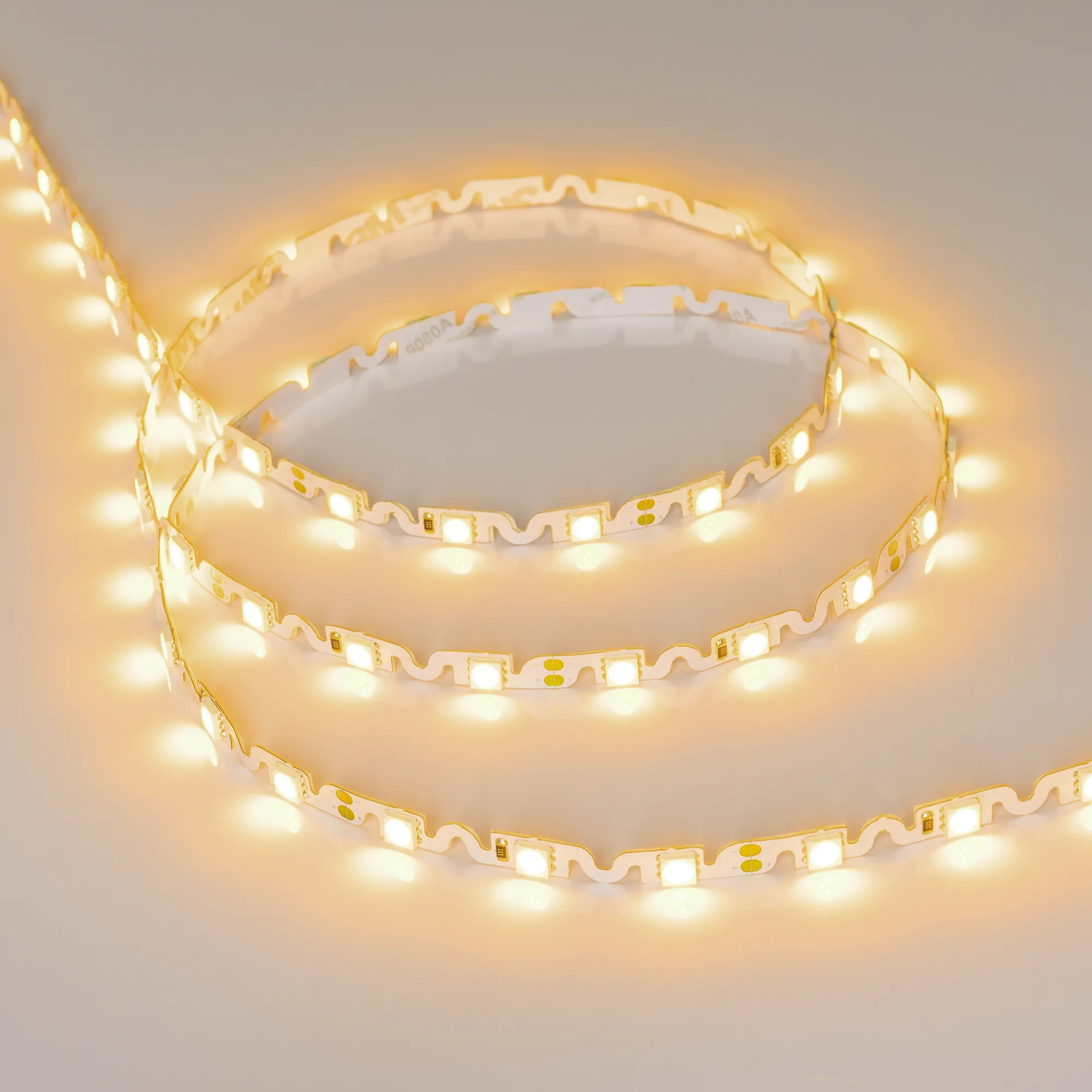 Гибкая лента с фигурной платой в форме волны, легко изгибается на плоскости. Светодиоды smd 5060, 48шт/м (240шт на 5м), белая плата 6.1мм, скотч 3М. Цвет ЖЁЛТЫЙ. Питание 12V, мощность 11.5 Вт/м (57.5 Вт на 5м), угол 120°. Размеры 5000х6.1х2.2мм. Мин.отрезок 62.5мм, 3 светодиода. Цена за 1м.