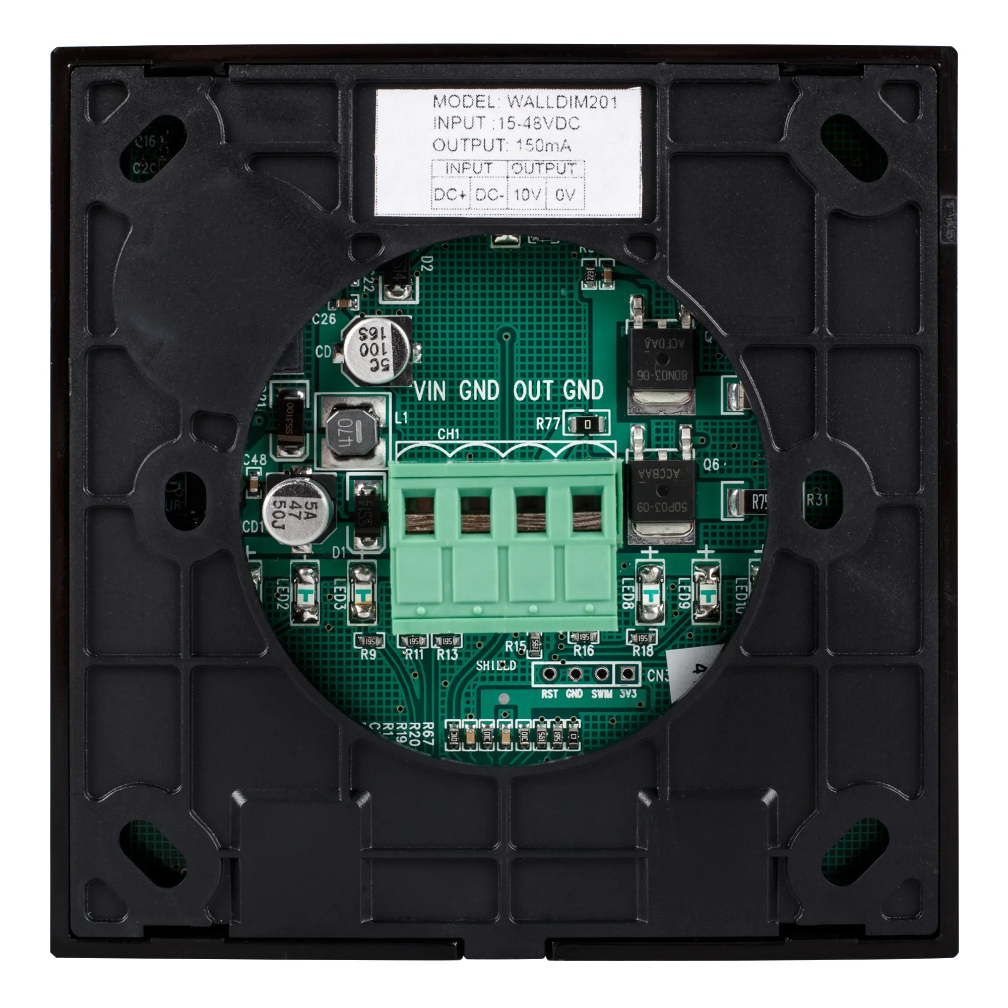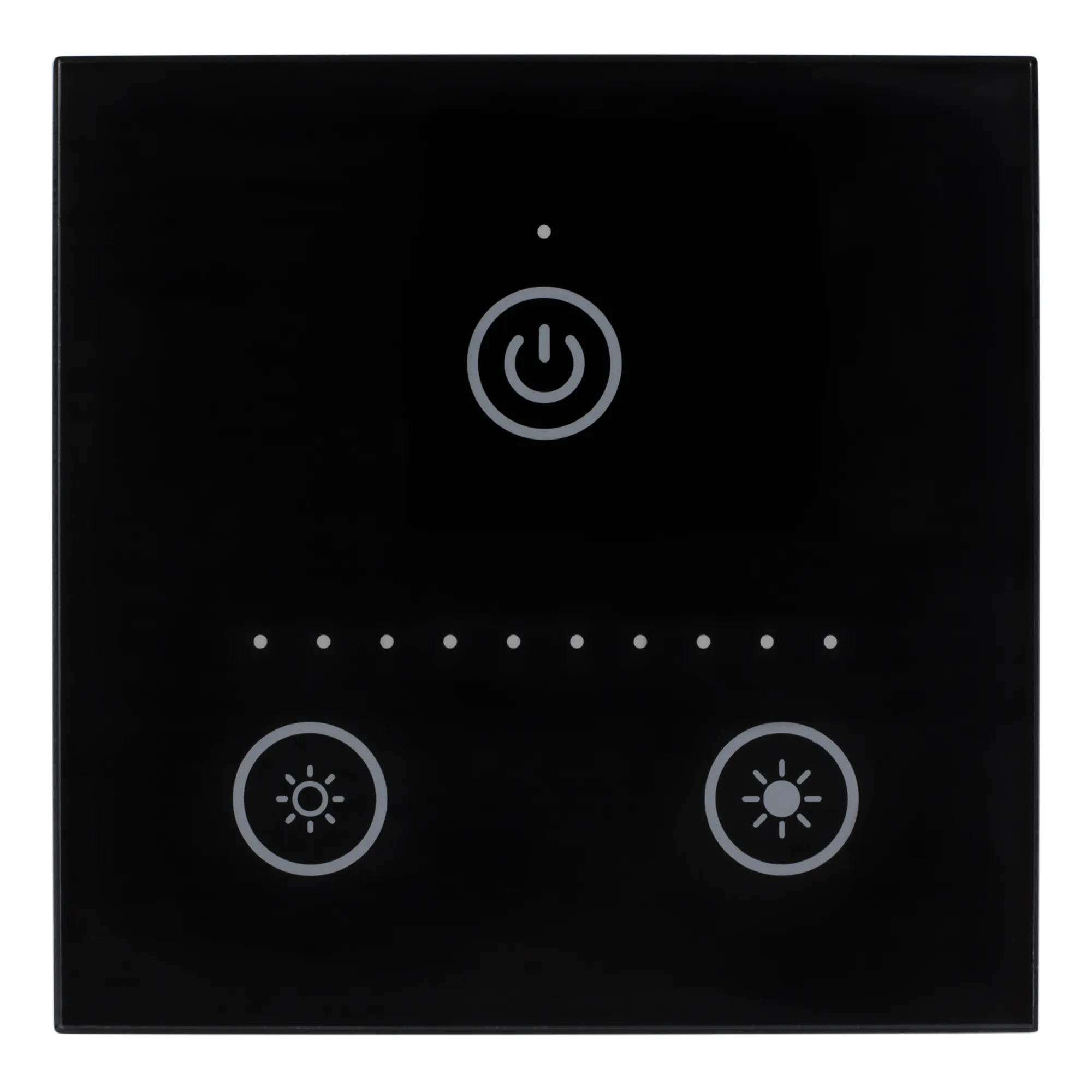 Встраиваемая тонкая сенсорная панель для диммеров 0/1-10В. Активный выход 0-10В макс.150 мА, питание 12-24 VDC. Без выключателя. Габариты:86х86x10 мм. Лицевая поверхность - глянцевое стекло, черный цвет.
