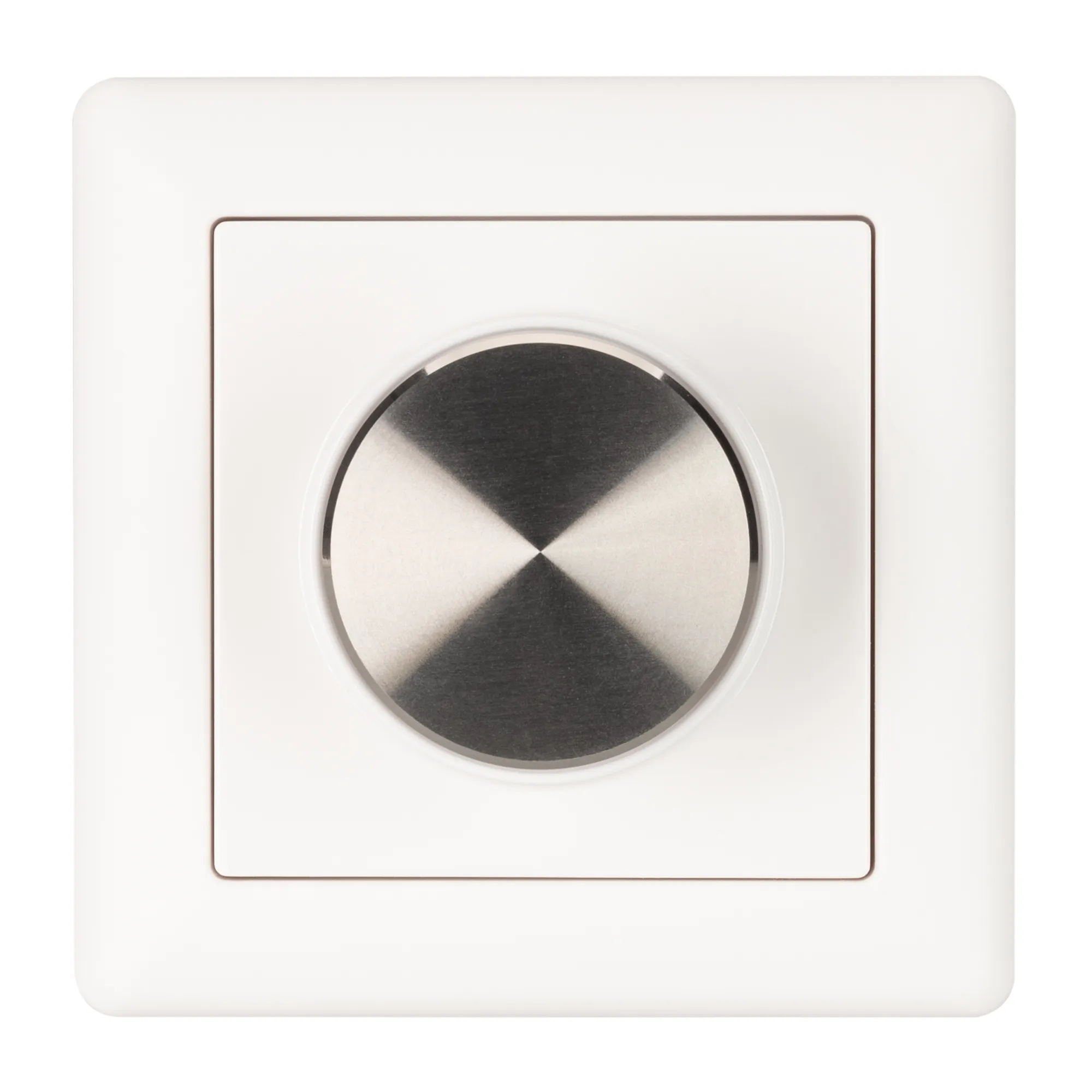 Встраиваемая роторная белая пластиковая панель для работы по протоколу DALI. Диммирование и управления цветом свечения (RGB) 1 группы или широковещательное (broadcast). Поддержка DT8, при адресации 3 каналов (R+G+B) на 1 адрес. Установка номера группы выполняется переключателями на корпусе. Подсветка регулятора во включенном состоянии. Питание от шины DALI (4 мА). Стандартная рамка входит в комплект поставки.
