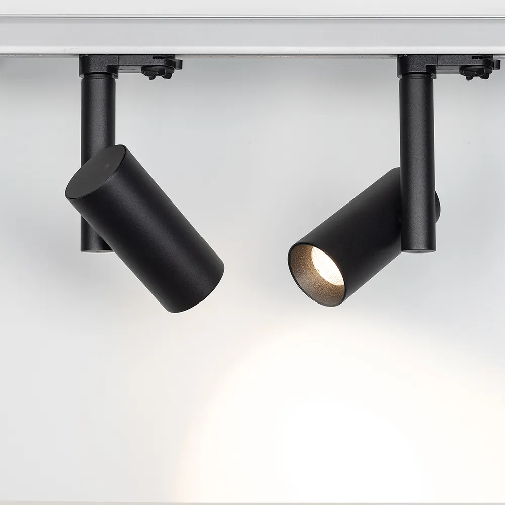Трековый светильник 8Вт, черный круглый корпус, черная вставка, металл.