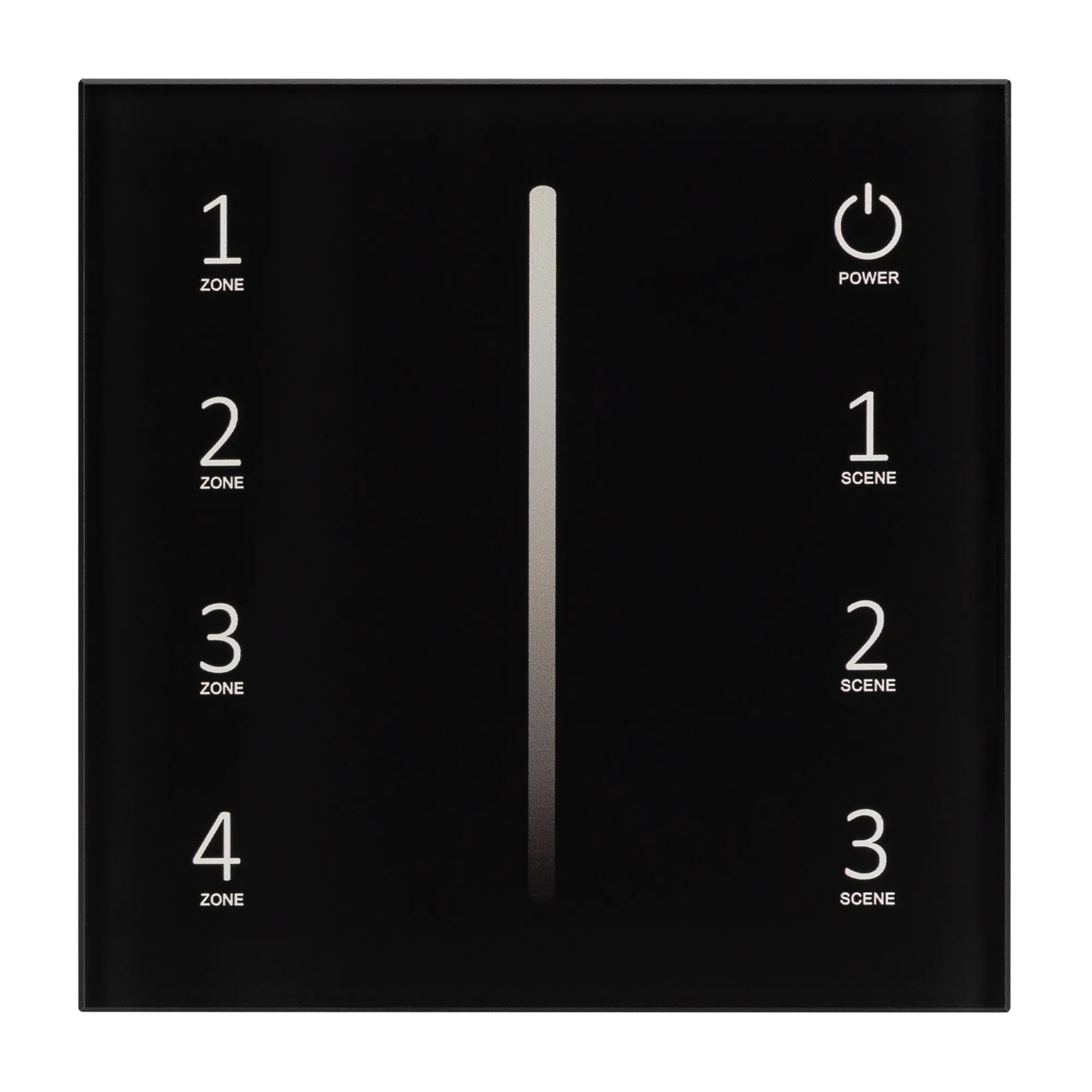 Встраиваемая сенсорная панель, цвет чёрный. Материал - стекло. Выходной сигнал 0/1-10V. Управление яркостью с сенсорной полосы. 4 зоны управления. Питание 230V, входное напряжение 86-265VAC. Габариты 86х86х35 мм. Панель совместима с 0/1-10V диммерами.