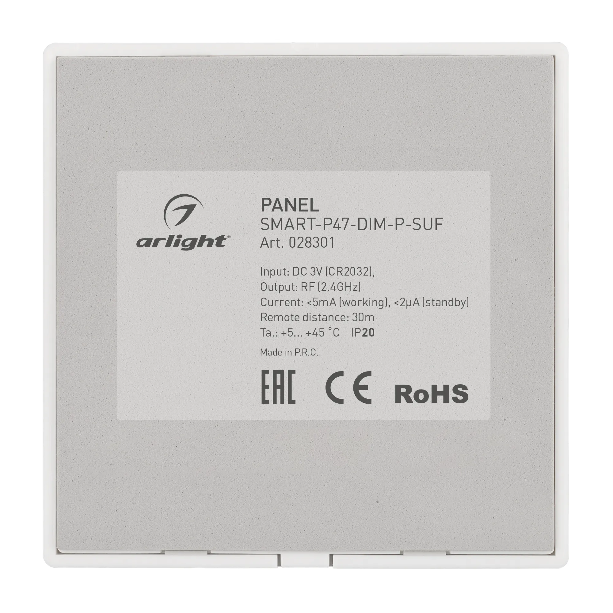 Панель SMART-P47-DIM-P-SUF (3V, 2 зоны, Knob, 2.4G) (Arlight, Пластик)