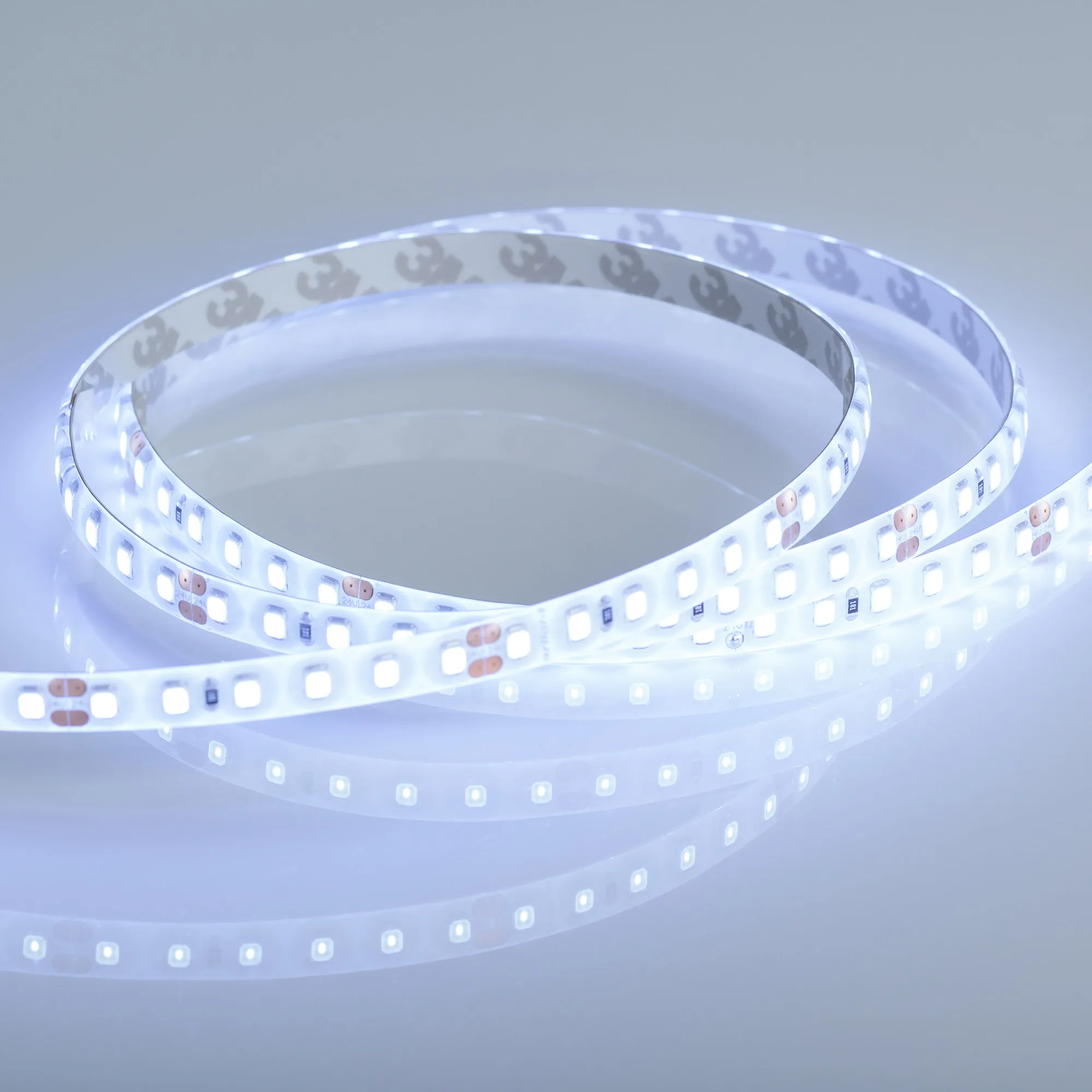 Поставка под заказ от 600 м.Гибкая лента PRO, герметичная IP65 (силикон сверху), светодиоды smd 2835, 120шт/м (600шт на 5м), скотч 3М. Цвет ХОЛОДНЫЙ 8000-12000K. Питание 24V, мощность 14.4 Вт/м (72 Вт на 5м), угол 120°, цветопередача CRI>85. Размеры 5000х8x2.2мм. Мин.отрезок 50мм, 6шт светодиодов. Пакет 5м. Цена за 1м. Обязательная установка на профиль.