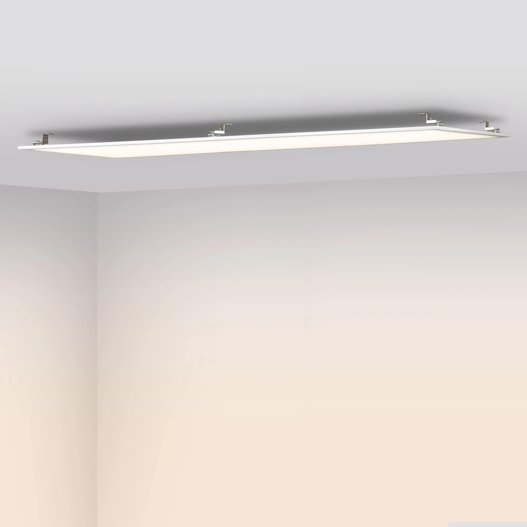 Светодиодная панель с торцевой заcветкой. Мощность 40 Вт, св. поток 3600 лм, 90 лм/Вт, теплый 3000 K, CRI>80, угол 120°, напряжение питания 230 В. Белый квадратный корпус из алюминия, экран PS, LGP PMMA, степень защиты IP40. Размер (Д×Ш×В) 1195×295×10,4 мм. Монтаж встраиваемый, установочное отверстие длина 1175 мм, ширина 275 мм. Драйвер 34.5-57.5 В, 700 мА, пульсация <5%.