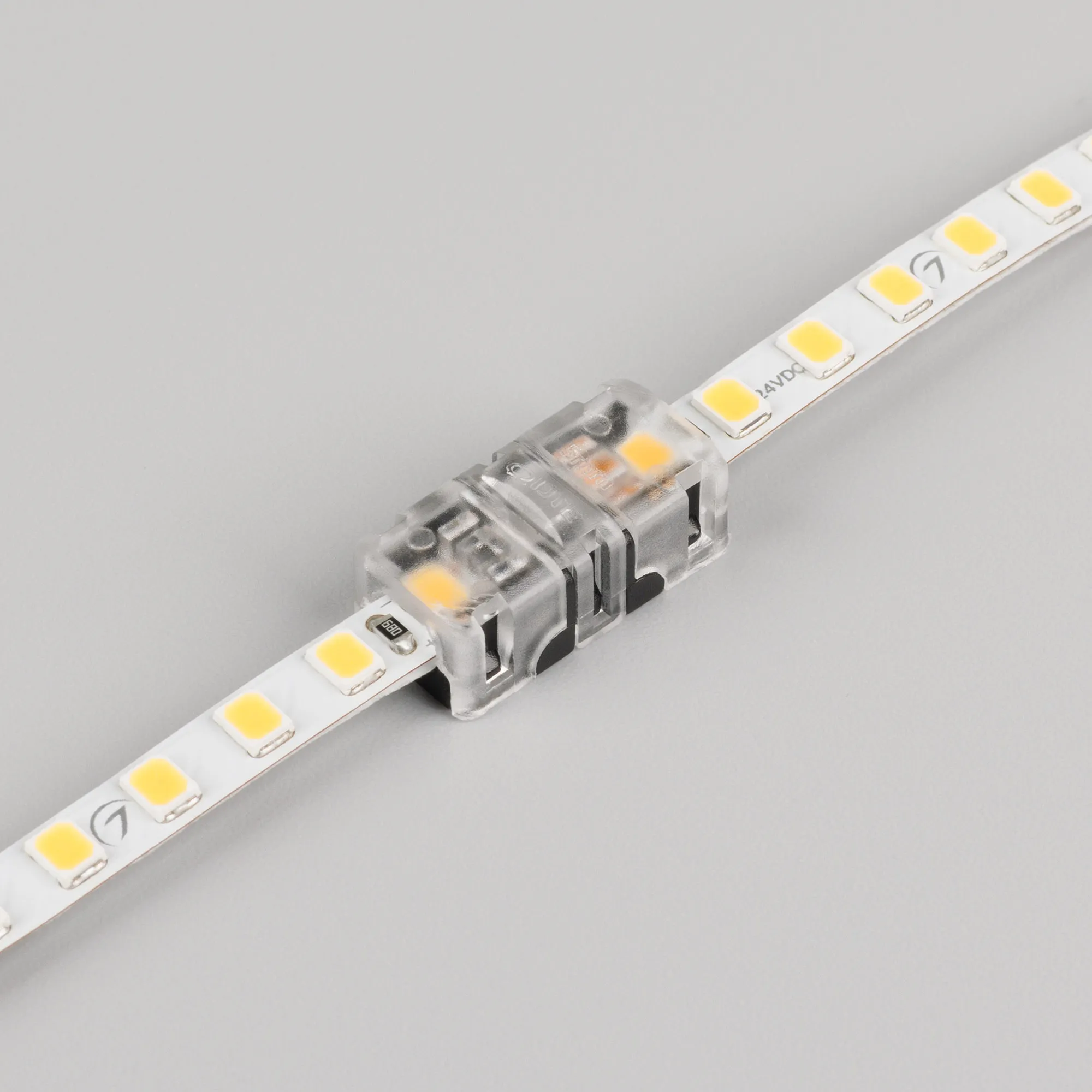 Одиночный коннектор для соединения 2-х отрезков открытых светодиодных одноцветных лент шириной 5 мм. Материал - прозрачный пластик. Обеспечивает соединение без видимых разрывов. Максимальный допустимый ток 3 А, напряжение 3-24 В. Цена за 1шт.