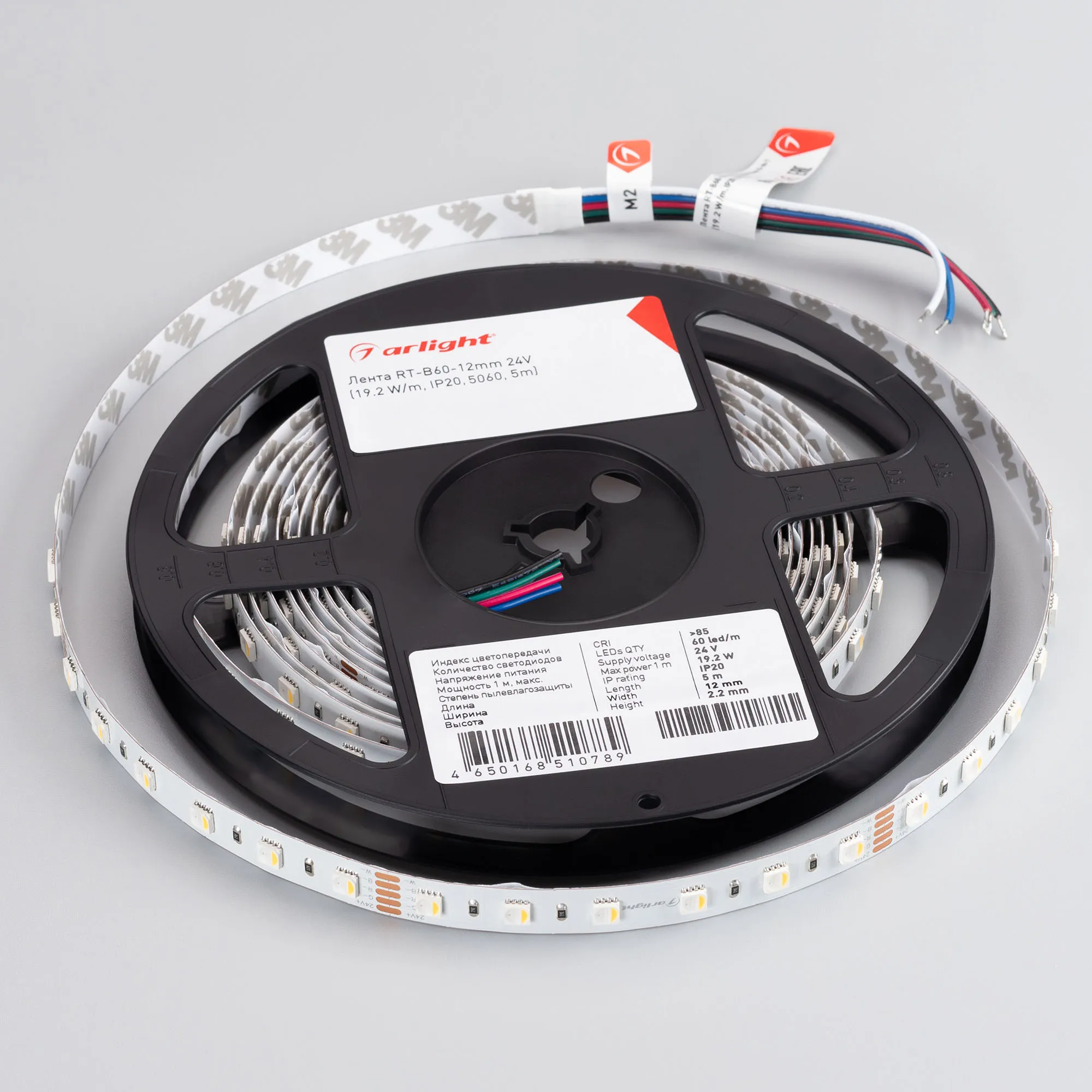 Лента светодиодная RT-B60-12mm 24V RGBW-Day-4-in-1 (19.2 W/m, IP20, 5060, 5m) (Arlight, Открытый)
