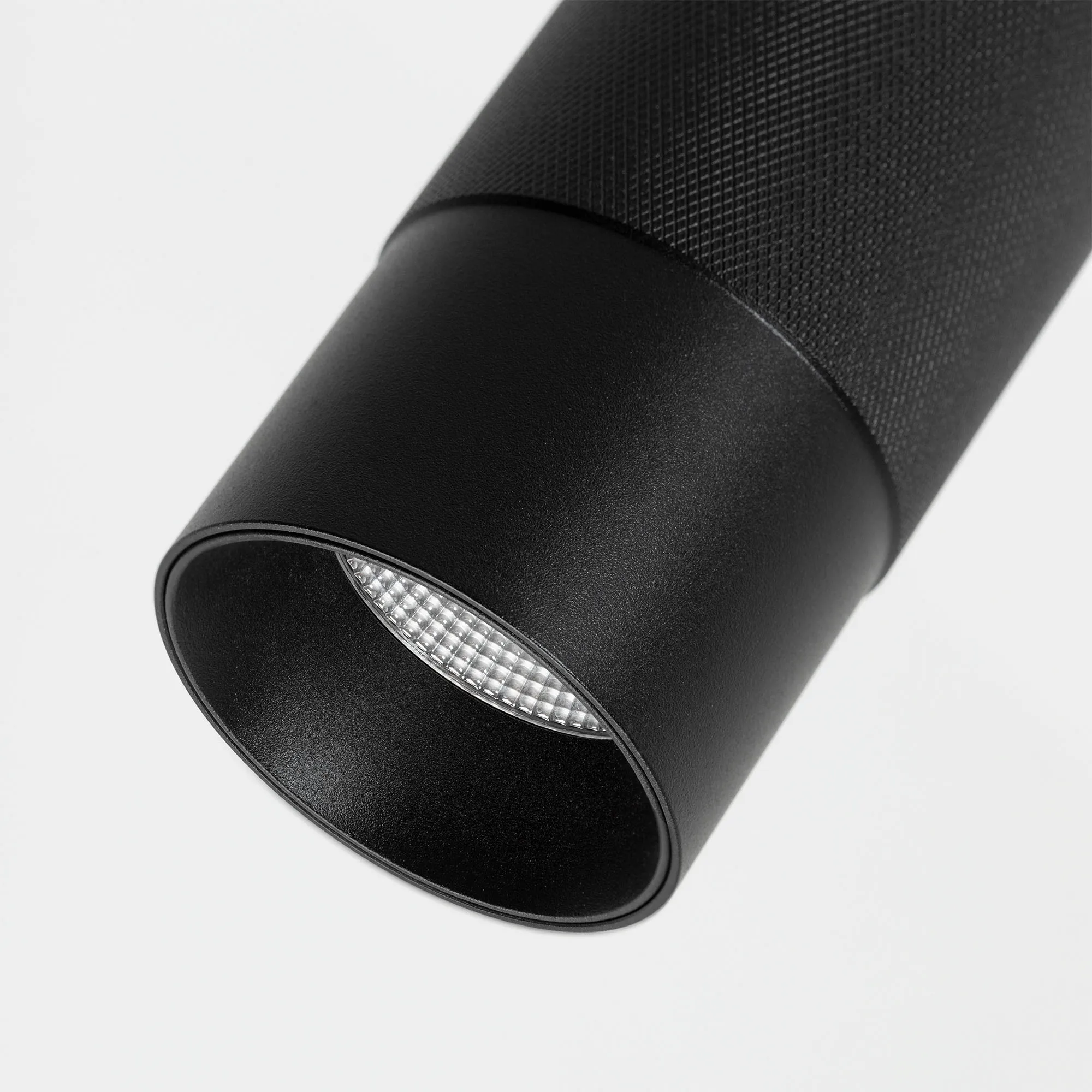 Подвесной светильник. Мощность 13 Вт, св. поток 732 лм, 57 лм/Вт, теплый 3000 K, CRI>90, угол 50°, напряжение питания 230 В. Черный круглый корпус из алюминия, рефлектор PC, степень защиты IP20. Размер: диаметр 70 мм, высота 300 мм, длина подвеса 1500 мм, размер чаши: диаметр 65 мм, высота 30 мм. Монтаж подвесной. Драйвер 24-42 В, 300 мА, пульсация <1%.