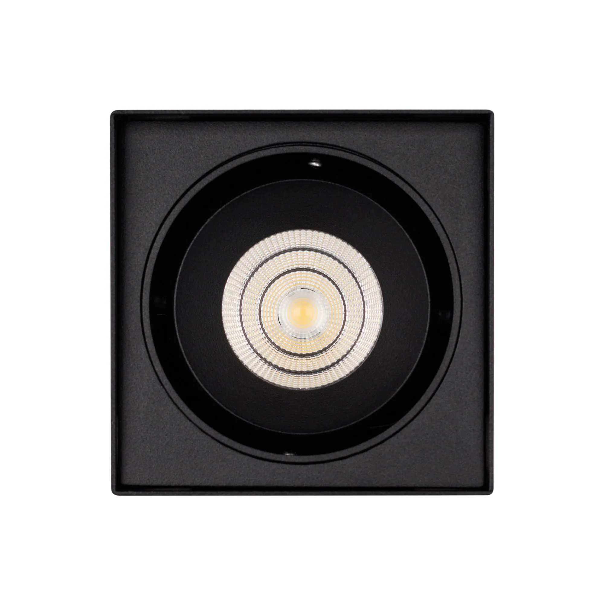 Накладной интерьерный светильник. Мощность 11 Вт, св. поток 830 лм, 75 лм/Вт, дневной 4000 K, CRI>90, угол 40°, регулируемое направление луча 30°, напряжение питания 230 В. Черный квадратный корпус из алюминия, степень защиты IP20. Размер: длина 100 мм, ширина 100 мм, высота 135 мм. Монтаж накладной. Драйвер 18-24 В, 500 мА, пульсация <5%.