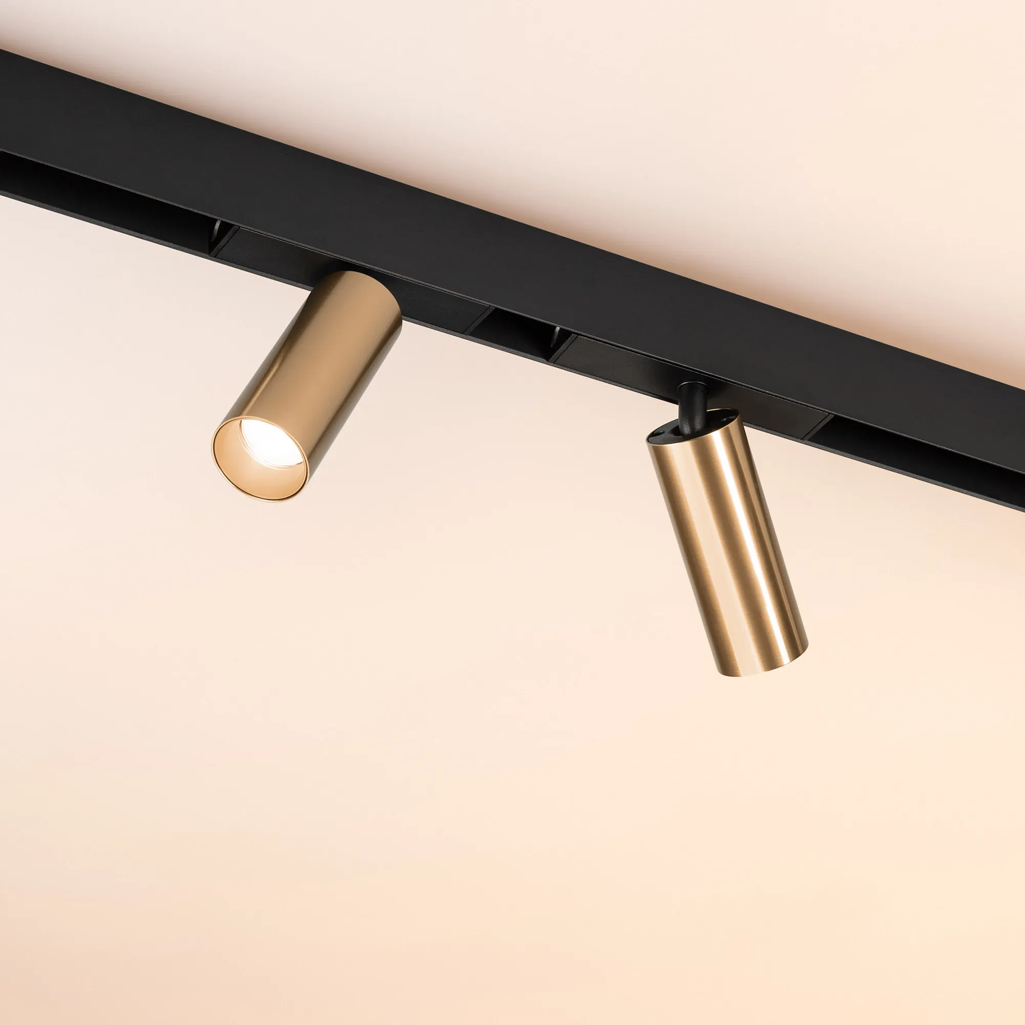 Под заказ от 100 шт. Светильник поворотный для магнитных треков шириной 25 мм, 9 Вт. Цвет свечения ТЕПЛЫЙ 3000K, световой поток 630 лм, угол 30°, CRI>90. Корпус прямоугольный, металл, цвет черный-золотой, IP20. Размеры LxWxH 100x20x120 мм. Входное напряжение DC24V, мощность 9 Вт. Драйвер DС24V/AC230V поставляется отдельно.Диаметр светоизлучающего модуля 35 мм. Диммируется только с 026407, 027633.