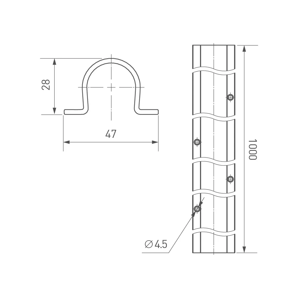 Горизонтальное потолочное крепление для герметичной ленты MOONLIGHT-D25. Длина 1 метр, подходит для любых потолочных поверхностей. Направление вывода кабеля универсальное. Укомплектовано 4 шурупами с дюбелями.
