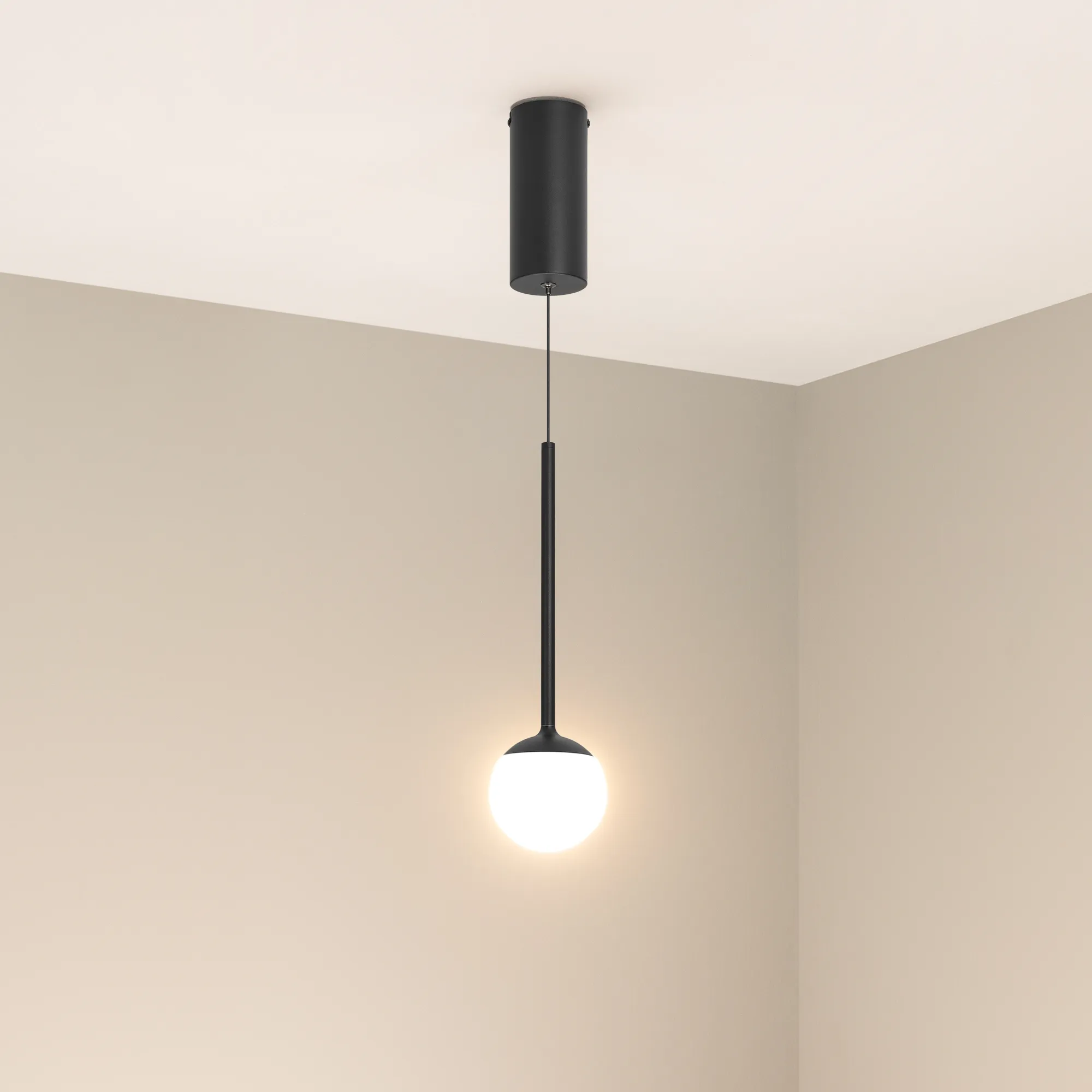 Подвесной светильник. Мощность 8 Вт, св. поток 620 лм, 80 лм/Вт, теплый 3000 K, CRI>90, угол 180°, напряжение питания 230 В. Черный круглый корпус из алюминия и стали, рассеиватель акрил, степень защиты IP20. Размер: диаметр 100 мм, высота ножки 244 мм, высота с плафоном 351 мм, размер чаши: диаметр 70 мм, высота 160 мм. Монтаж подвесной, длина подвеса 1150 мм. Драйвер 13-24 В, 300 мА, пульсация <1%.