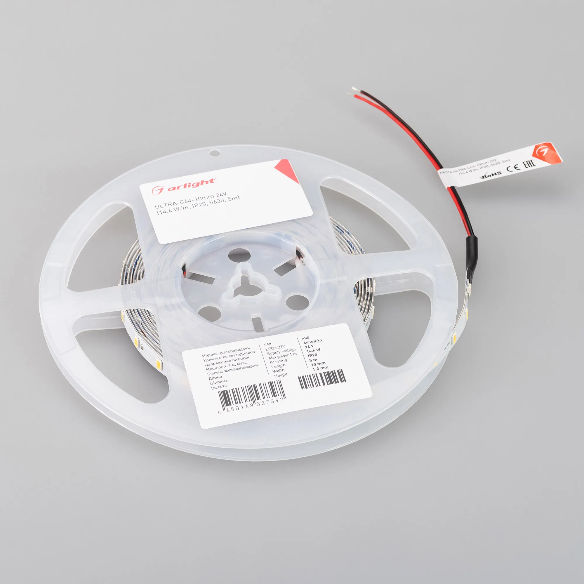 Лента светодиодная ULTRA-C64-10mm 24V Warm2700 (14.4 W/m, IP20, 5630, 5m) (Arlight, высок.эфф.160 лм/Вт)