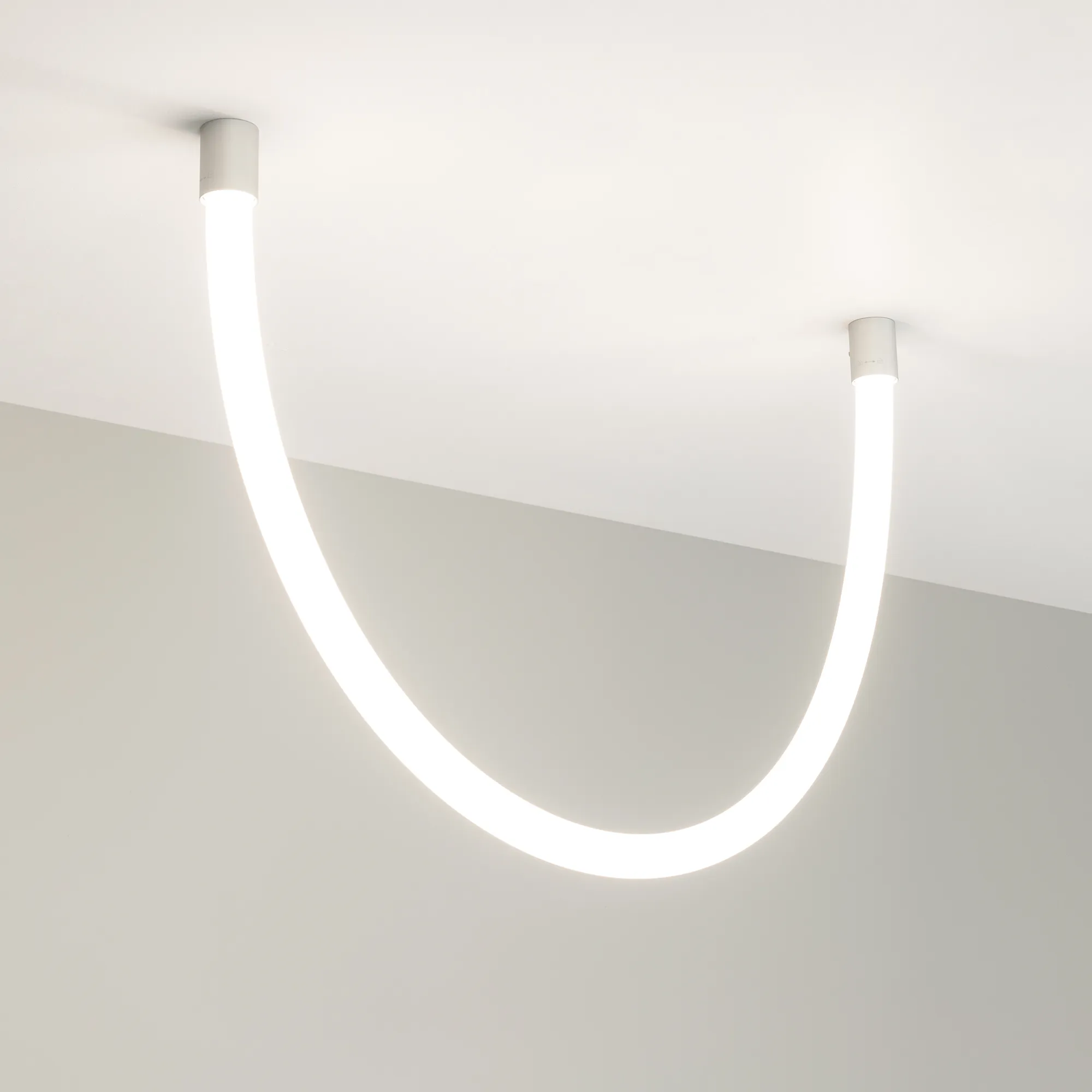 Вертикальное потолочное крепление для герметичной ленты MOONLIGHT-D25. Тип-U, лента подвешивается за две точки, подходит для любых потолочных поверхностей. В комплекте 2 потолочных крепления к ленте MOONLIGHT-360 диаметром 25мм, 4 шурупа с дюбелями и шестигранный ключ для фиксации неона в креплениях.