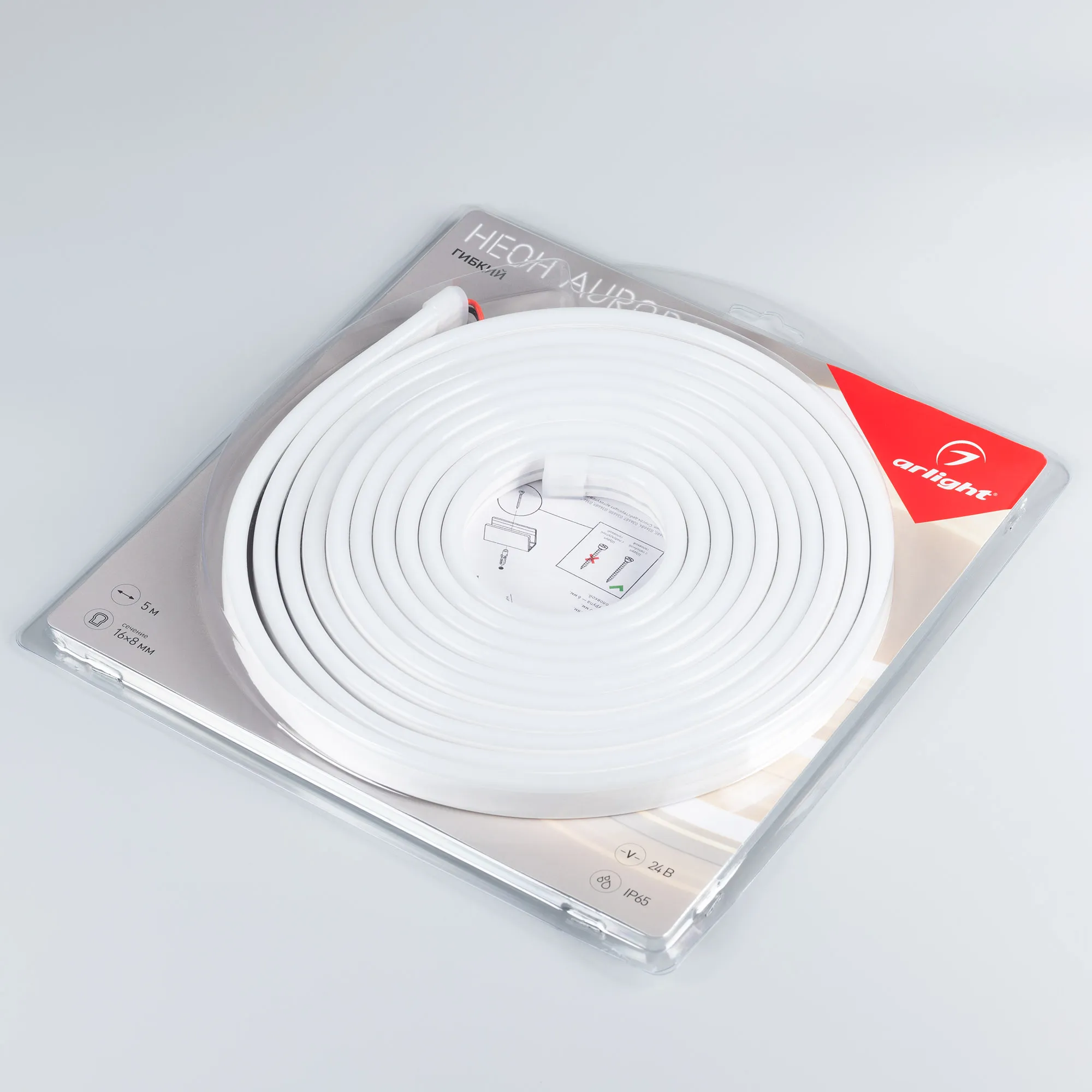 Гибкий неон AURORA в силиконовой оболочке. Светодиоды SMD2835, 120 шт-м, цвет ЖЁЛТЫЙ. Сечение 16х8 мм, горизонтальный (боковой) изгиб, IP65, шаг резки 8.33 мм, мощность 10 Вт-м, напряжение питания DC 24V. Укомплектован заглушками и 30см проводом питания.