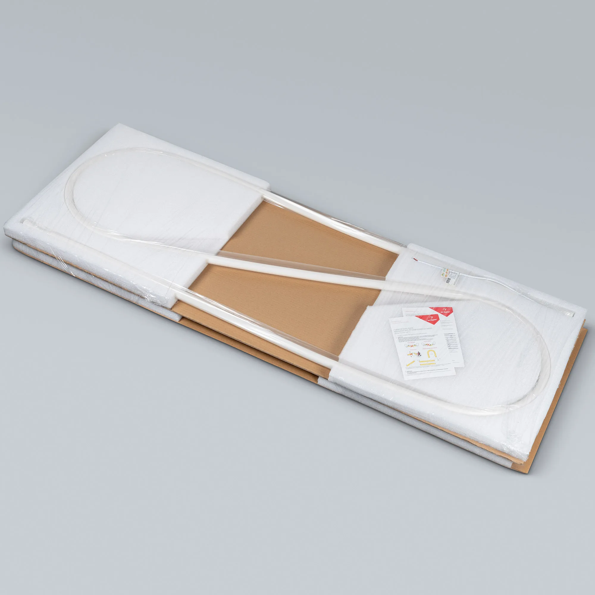 Гибкая герметичная лента (неон серии MOONLIGHT), сечение 25×25 мм. Светодиоды CSP 1088 шт/м. Цвет свечения ТЕПЛЫЙ БЕЛЫЙ (3000 К), индекс цветопередачи CRI>90, световой поток 1180 лм/м, угол излучения 360°. Мощность 20 Вт/м, питание 24 В. Класс пылевлагозащиты IP65. Размеры 5000×25×25 мм. Резка не предусмотрена. Форма изгиба ленты фиксируется. Изгиб согласно метки на корпусе, минимальный радиус изгиба 150 мм. Кабель питания длиной 500 мм, вывод с одной стороны перпендикулярно линии сечения неона. Катушка 5 м. Цена за 1 м. В виду особенности конструкции ленты, упаковка имеет размеры 1600x980x260 мм. Гарантия 3 года.