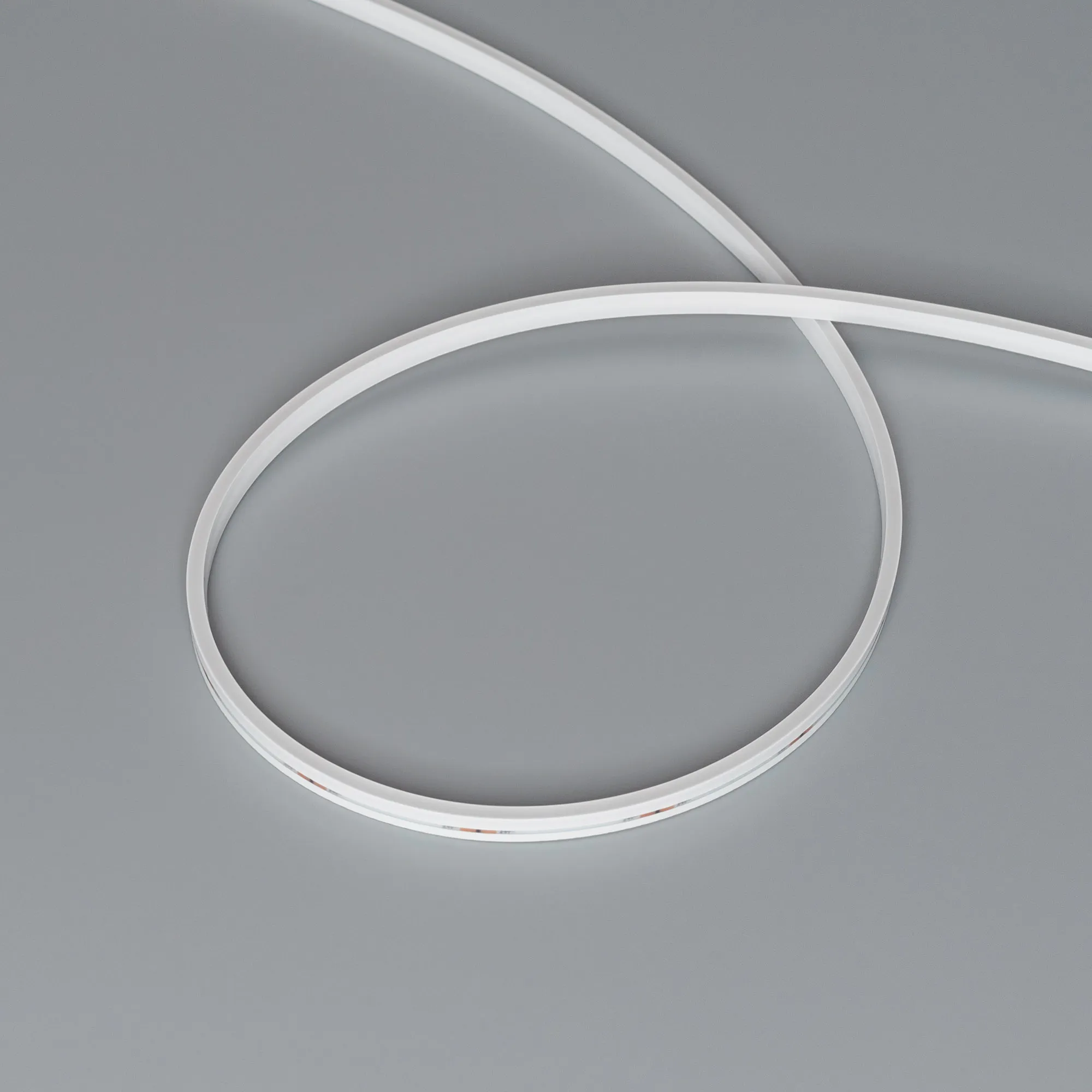 Гибкая герметичная лента (неон серии MOONLIGHT), сечение 3×6 мм. Светодиоды SMD 2216 196 шт/м. Цвет свечения ТЁПЛЫЙ (3000 К), индекс цветопередачи CRI>90, световой поток 185 лм/м, угол излучения 112°. Мощность 7.2 Вт/м, питание 24 В. Класс пылевлагозащиты IP54. Размеры 5000×3×6 мм. Мин. отрезок 35.7 мм. Горизонтальный изгиб SIDE, минимальный радиус изгиба 30 мм. Кабель питания длиной 500 мм, вывод с двух сторон вдоль линии сечения неона. Катушка 5 м. Цена за 1 м. Гарантия 3 года.