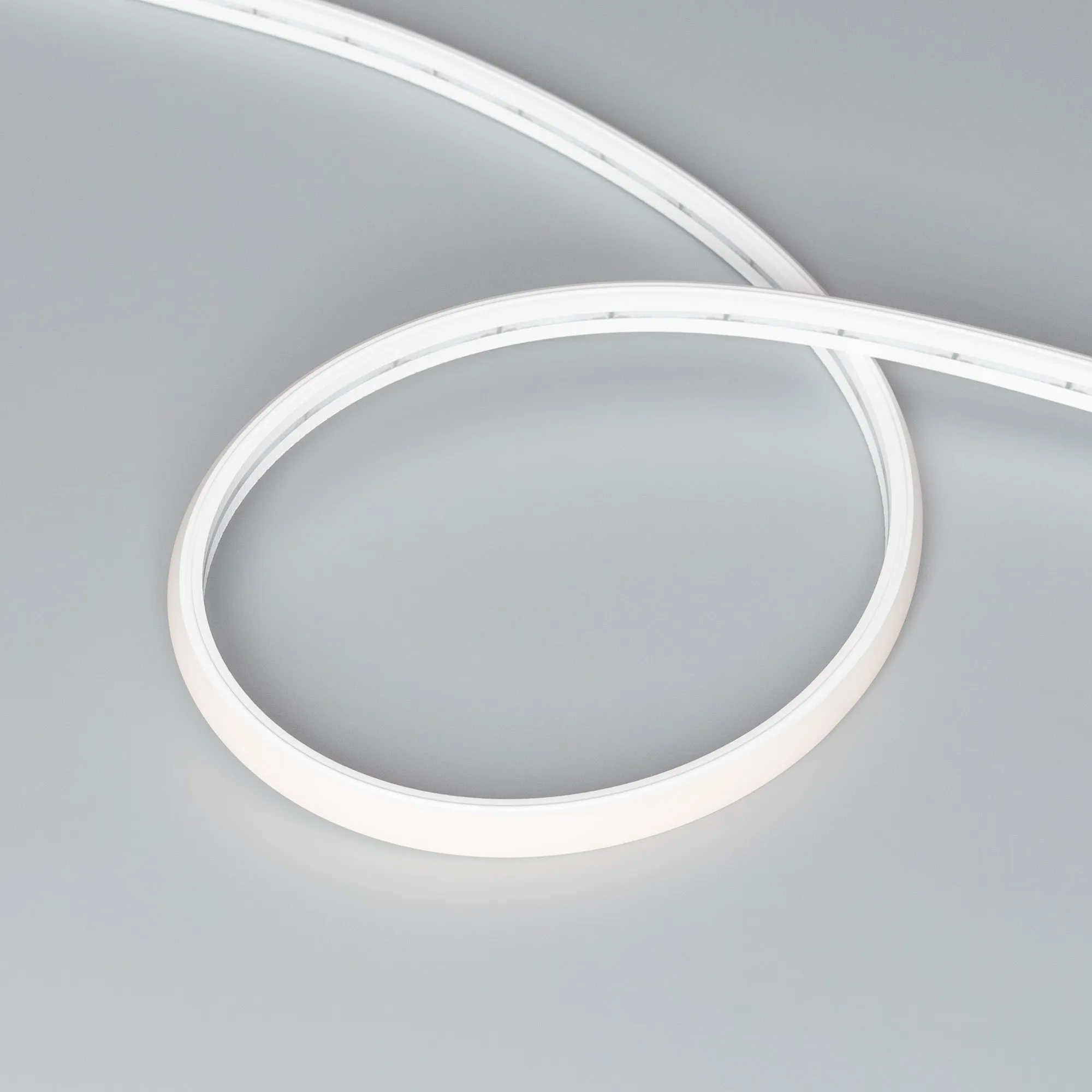 Гибкая герметичная лента (неон серии MOONLIGHT), сечение 11×7 мм. Светодиоды CSP 320 шт/м. Цвет свечения ТЁПЛЫЙ БЕЛЫЙ (2300 К), индекс цветопередачи CRI>90, световой поток 750 лм/м, угол излучения 120°. Мощность 10 Вт/м, питание 24 В. Класс пылевлагозащиты IP65. Размеры 5000×7×11 мм. Мин. отрезок 25 мм. Вертикальный изгиб TOP, минимальный радиус изгиба 60 мм. Вывод кабеля с двух сторон. Катушка 5 м. Цена за 1 м. Гарантия 3 года.