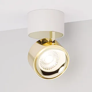 Светильник накладной поворотный. Мощность 9 Вт, св. поток 600 лм, 67 лм/Вт, дневной 4000 K, CRI>90, угол 36°, напряжение питания 230 В. Модуль Цвета Светлое Золото, Белый круглый корпус из алюминия, экран поликарбонат, степень защиты IP20. Размер: диаметр 77 мм, высота 92 мм. Монтаж накладной. Драйвер 38 В, 200 мА, пульсация <1%.