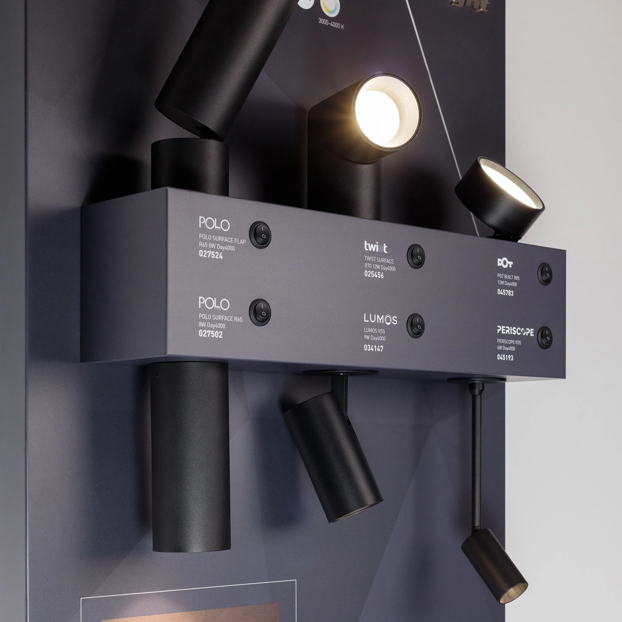 На стенде демонстрируются накладные и встраиваемые светильники разных серий для внутреннего применения.