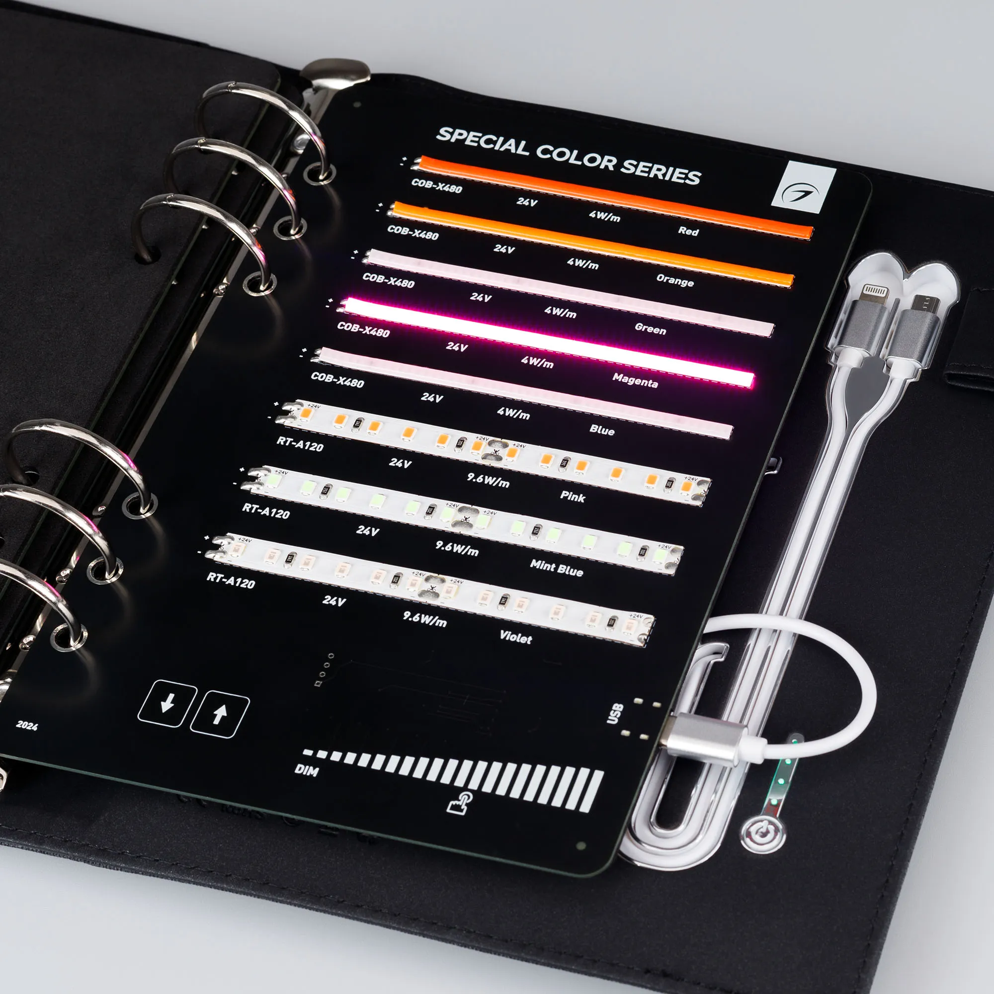 В кейс входят 45 образцов моделей лент COB, RT, MICROLED, MIX, SPI.