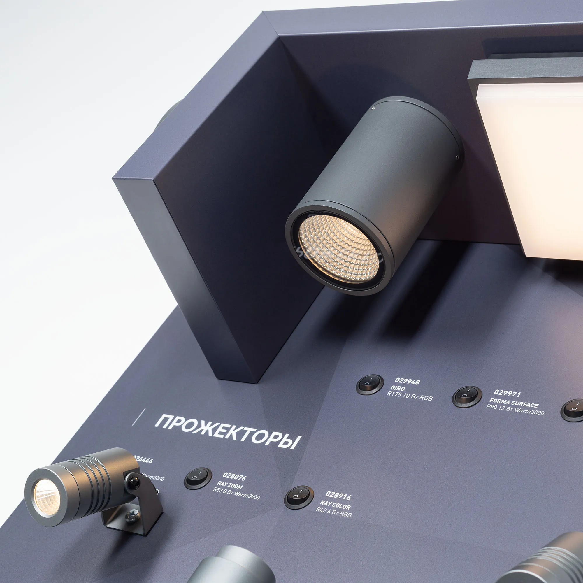 Стенд НАРУЖНОЕ ОСВЕЩЕНИЕ. Потолочные, напольные, грунтовые, подводные светильники и прожекторы. Материал - композит 3 мм, пленка, печать.