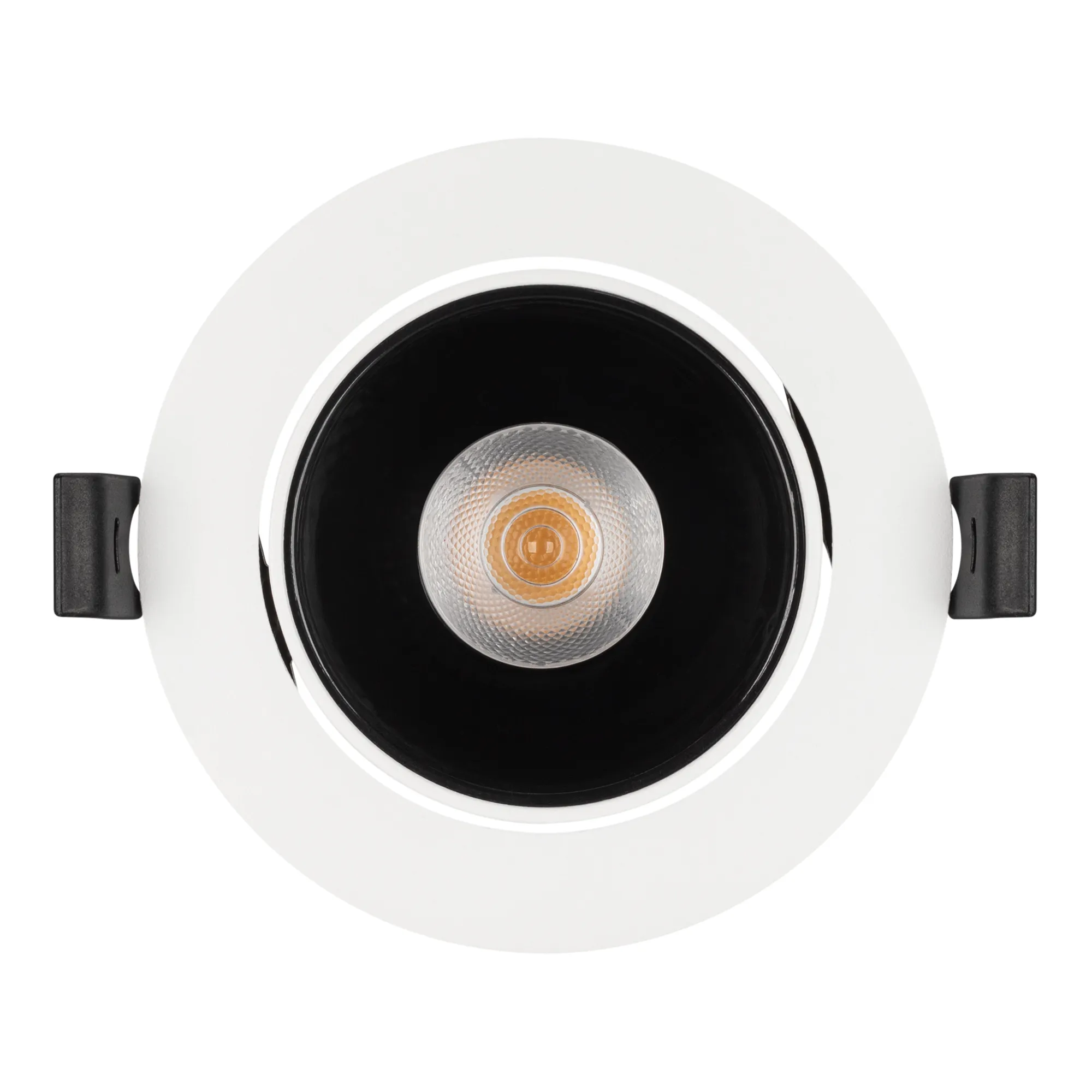 Встраиваемый поворотный светильник даунлайт. Мощность 12 Вт,св. поток 913 лм, 70 лм/Вт, дневной 4000 K, CRI>90, UGR<16, угол 32°, напряжение питания 230 В. Белый круглый корпус из алюминия, черный МАТОВЫЙ отражатель из PMMA, степень защиты IP20. Размер: диаметр 102 мм, высота 70 мм. Монтаж встраиваемый, установочное отверстие: диаметр 95 мм. Драйвер 20-40 В, 300 мА, пульсация <2%.