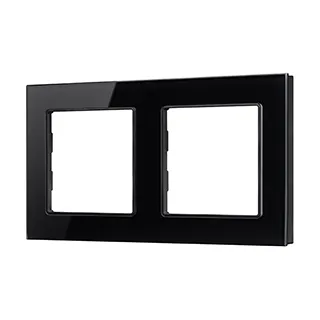 Рамка стеклянная на 2 поста, под встраиваемый механизм (квадрат). Цвет - черный. Ориентации монтажа - горизонтальная.