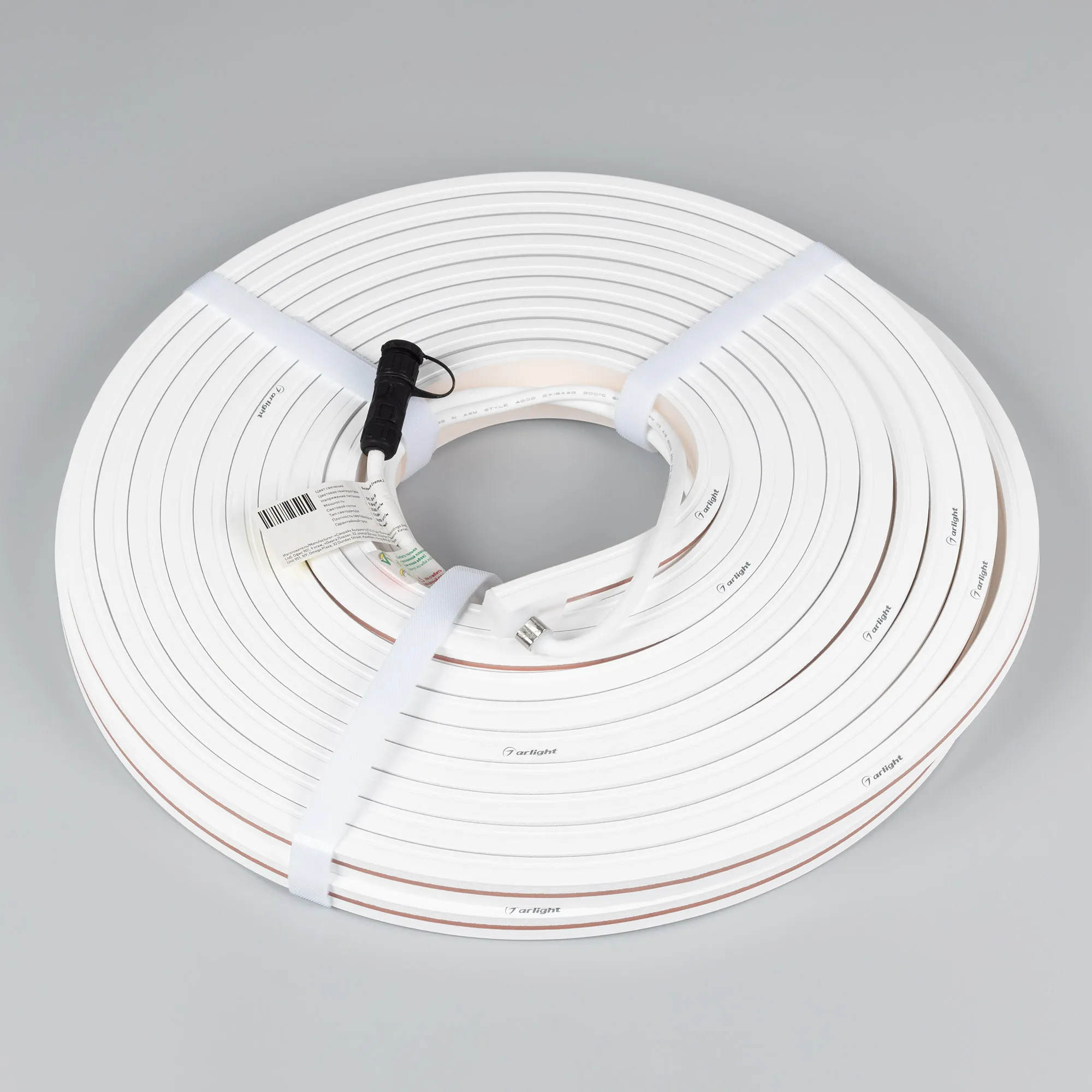 Гибкая герметичная лента (неон серии MOONLIGHT), сечение 12×13 мм. Светодиоды CSP 320 шт/м. Цвет свечения ТЕПЛЫЙ БЕЛЫЙ (3000 К), индекс цветопередачи CRI>90, световой поток 250 лм/м, угол излучения 114°. Мощность 5 Вт/м, питание 24 В. Класс пылевлагозащиты IP67. Размеры 15000×12×13 мм. Мин. отрезок 50 мм. Вертикальный изгиб TOP, минимальный радиус изгиба 60 мм. Катушка 15 м. Цена за 1 м. Диапазон рабочих температур окружающей среды при продолжительной эксплуатации -25...+80°С , при кратковременной -25...+110°С. Гарантия 3 года.