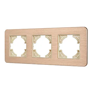 Рамка алюминиевая на 3 поста, под встраиваемый механизм. Цвет - золотой. Среднего уровня герметичности IP20. Ориентация монтажа - горизонтальная (основным ориентиром служат посадочные выступы для накладки механизма).