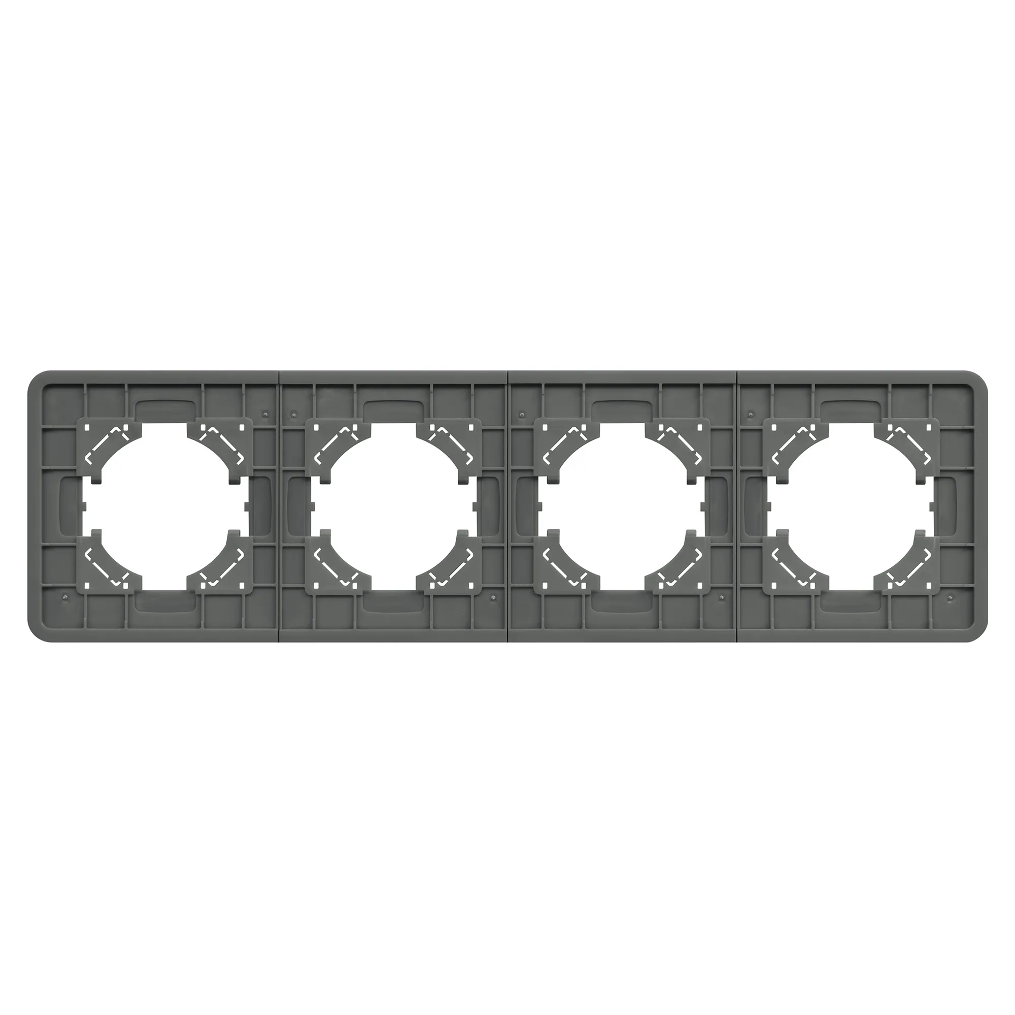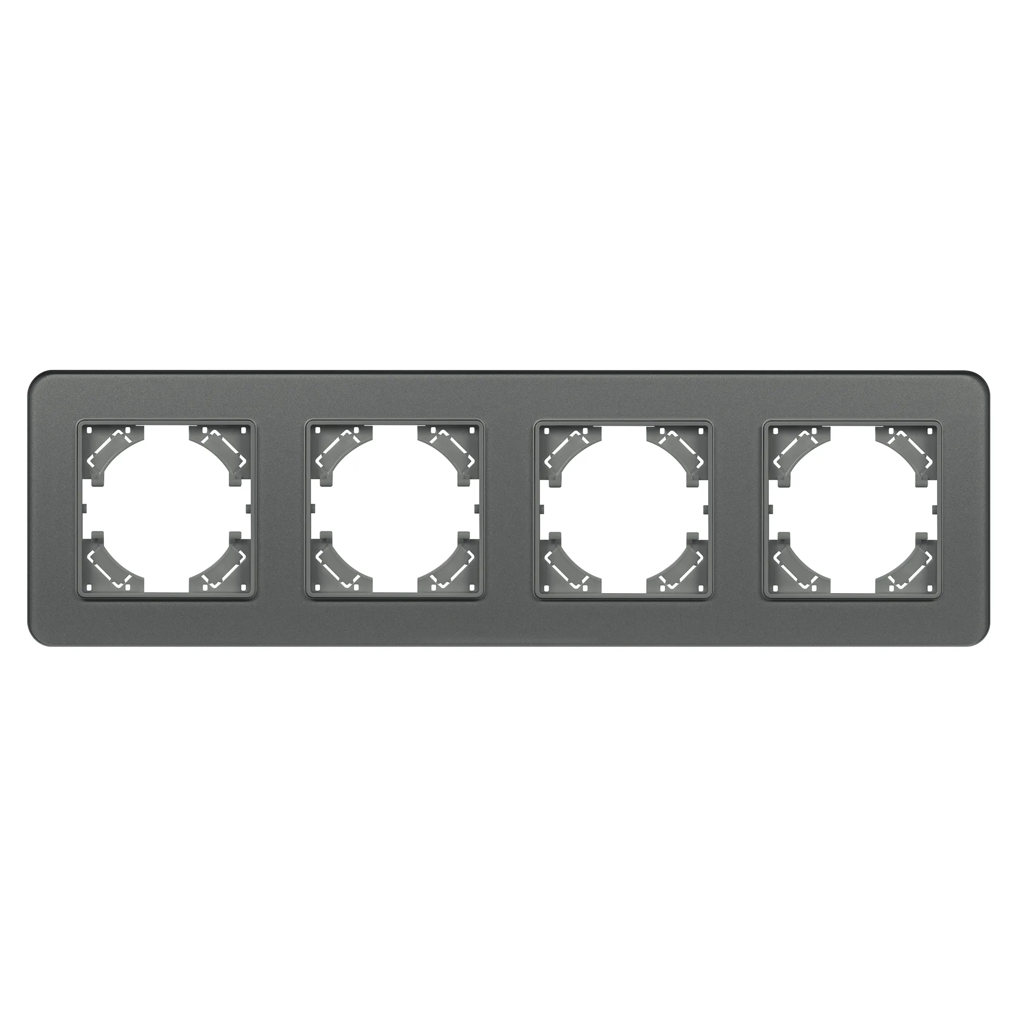 Рамка стеклянная на 4 поста, под встраиваемый механизм. Цвет - серый с Soft-Touch покрытием. Среднего уровня герметичности IP20. Ориентация монтажа - горизонтальная (основным ориентиром служат посадочные выступы для накладки механизма).