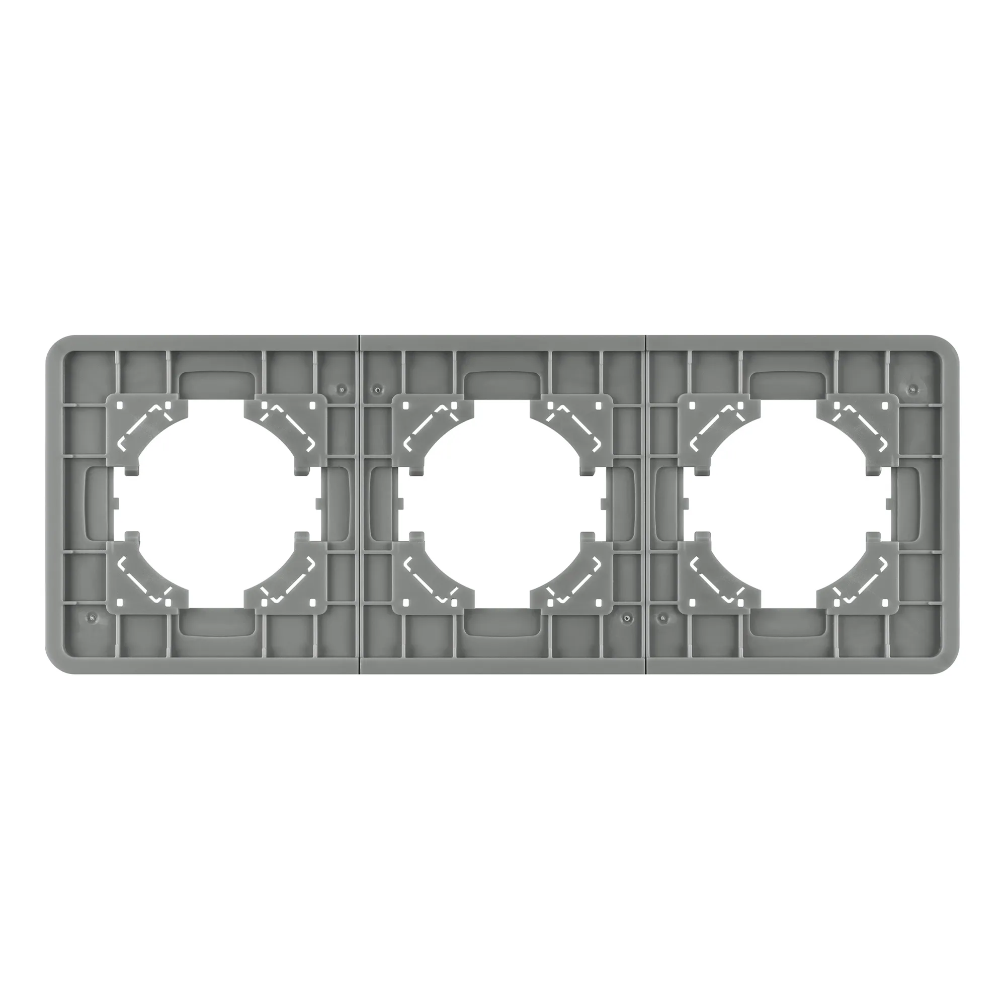 Рамка стеклянная на 3 поста, под встраиваемый механизм. Цвет - серый. Среднего уровня герметичности IP20. Ориентация монтажа - горизонтальная (основным ориентиром служат посадочные выступы для накладки механизма).