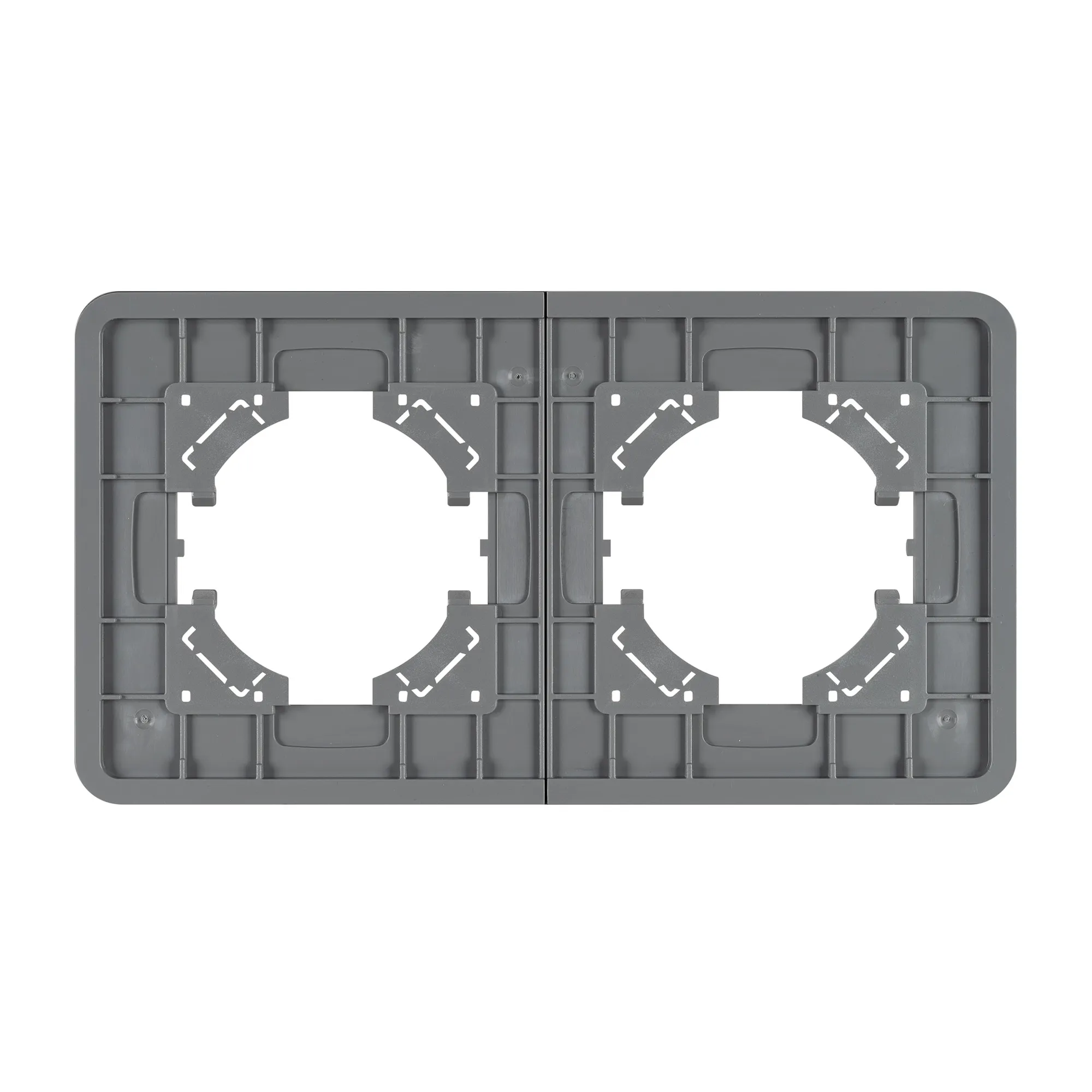 Рамка стеклянная на 2 поста, под встраиваемый механизм. Цвет - серый с Soft-Touch покрытием. Среднего уровня герметичности IP20. Ориентация монтажа - горизонтальная (основным ориентиром служат посадочные выступы для накладки механизма).