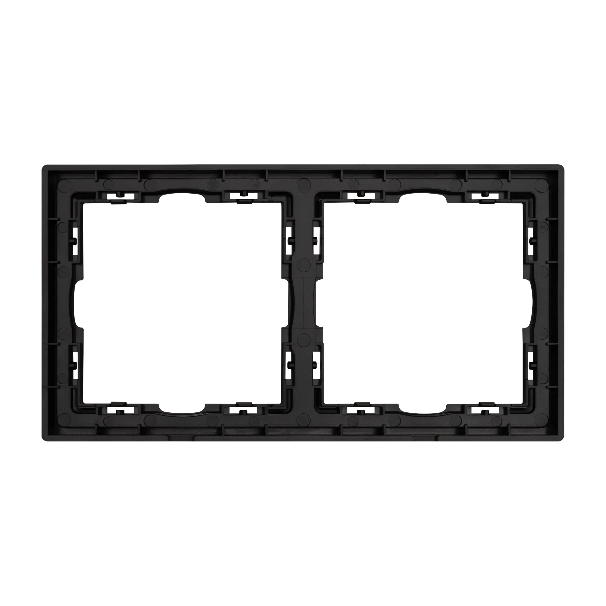 Рамка пластиковая на 2 поста, под встраиваемый механизм. Цвет - серый, с Soft-Touch покрытием. Среднего уровня герметичности IP20. Ориентация монтажа горизонтальная.