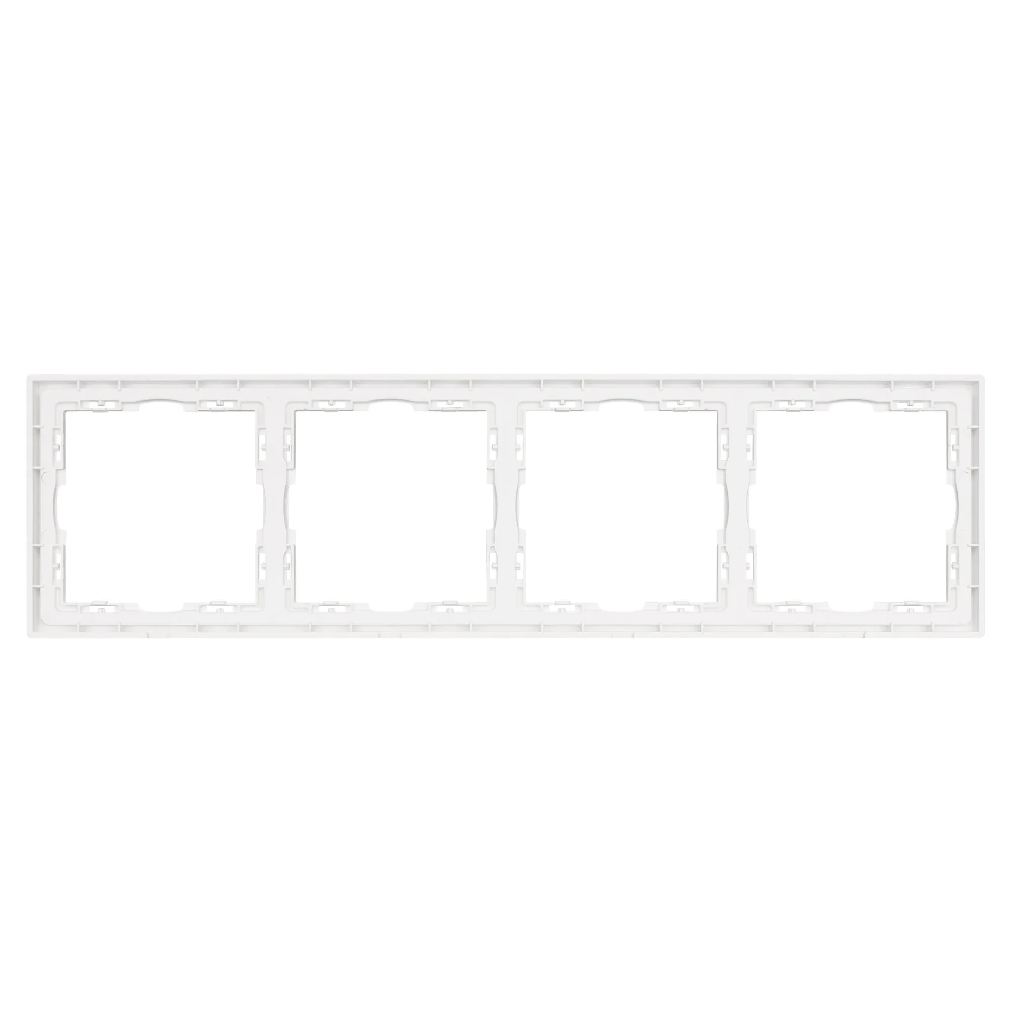 Рамка пластиковая на 4 поста, под встраиваемый механизм. Цвет - белый, с Soft-Touch покрытием. Среднего уровня герметичности IP20. Ориентация монтажа горизонтальная.