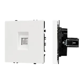 Механизм компьютерной розетки на 1 пост 6-й категории. Цвет - Белый, с Soft-Touch покрытием. Без фронтальной рамки. Уровень пылевлагозащиты IP20. Тип подключаемого разъема - RJ45. Розетка устанавливается в стандартный подрозетник круглого сечения диаметром 60мм.