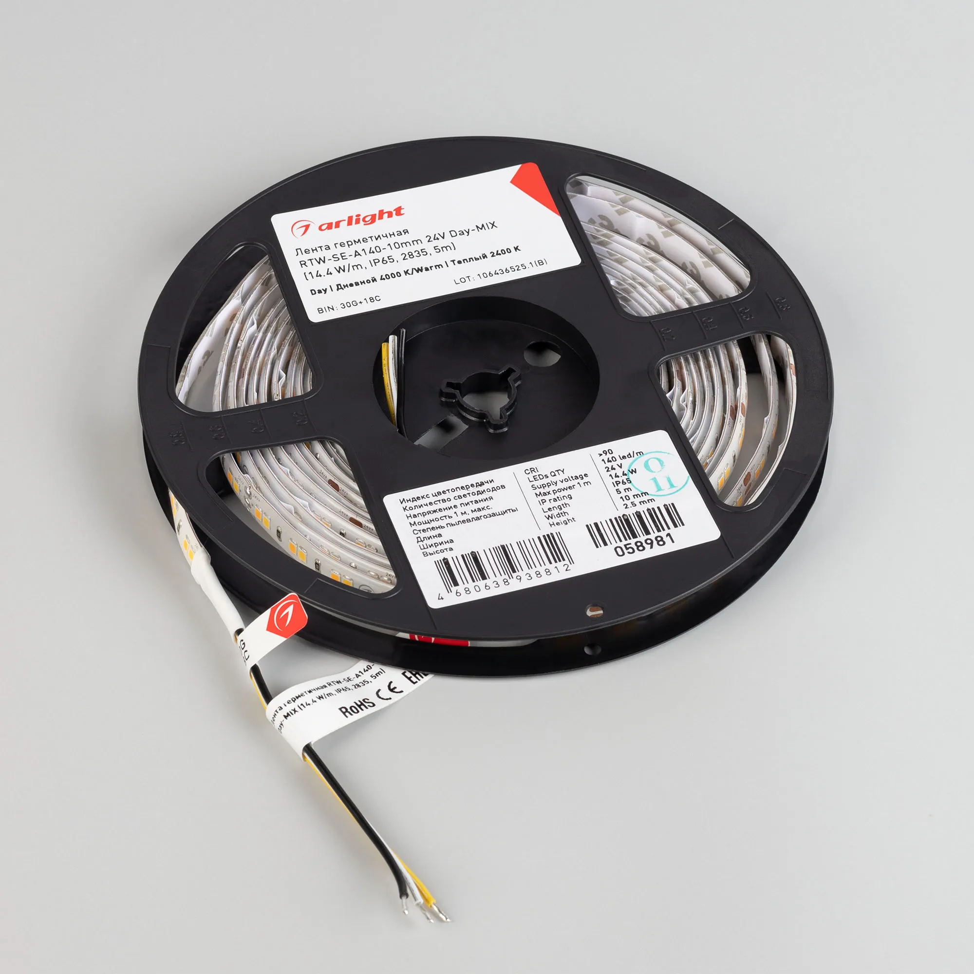 Лента герметичная RTW-SE-A140-10mm 24V Day-MIX (14.4 W/m, IP65, 2835, 5m) (Arlight, Изменяемая ЦТ)