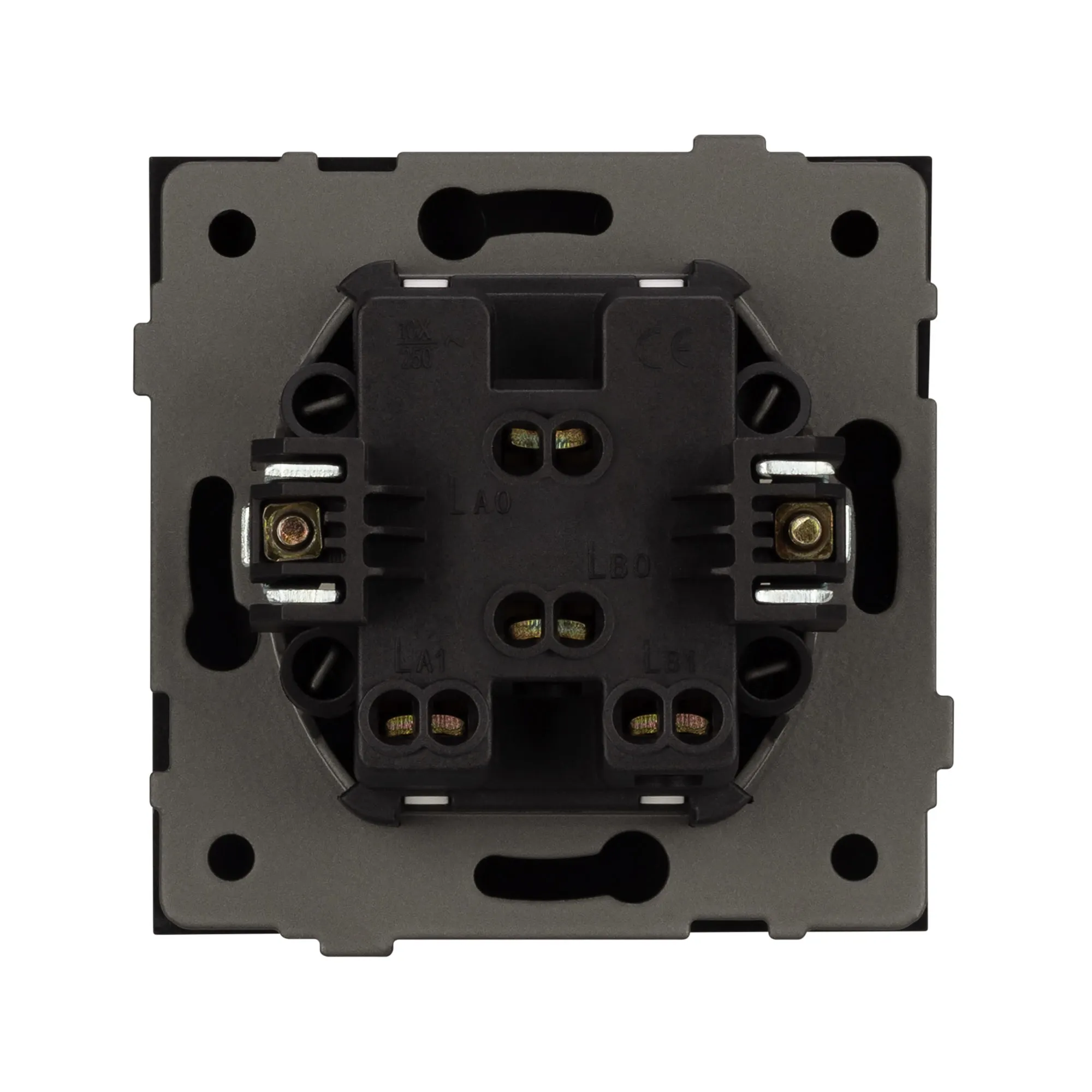 Механизм выключателя света клавишный на 1 пост 2 клавиши (непроходной). Цвет - серый. Без фронтальной рамки. Уровень пылевлагозащиты IP20. Выключатель устанавливается в стандартный круглый подрозетник круглого сечения диаметром 60мм.